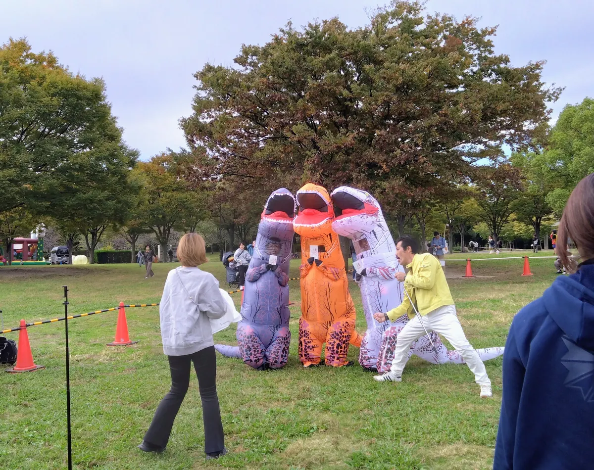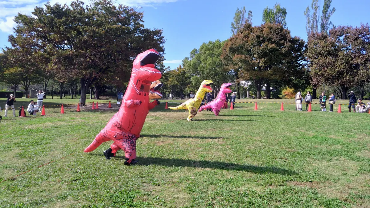 11/1(土)·2(日)、通勤途上にある花博記念公園鶴見緑地でティラノサウルスレースが開催されるとのことで今朝早速観て来ました。