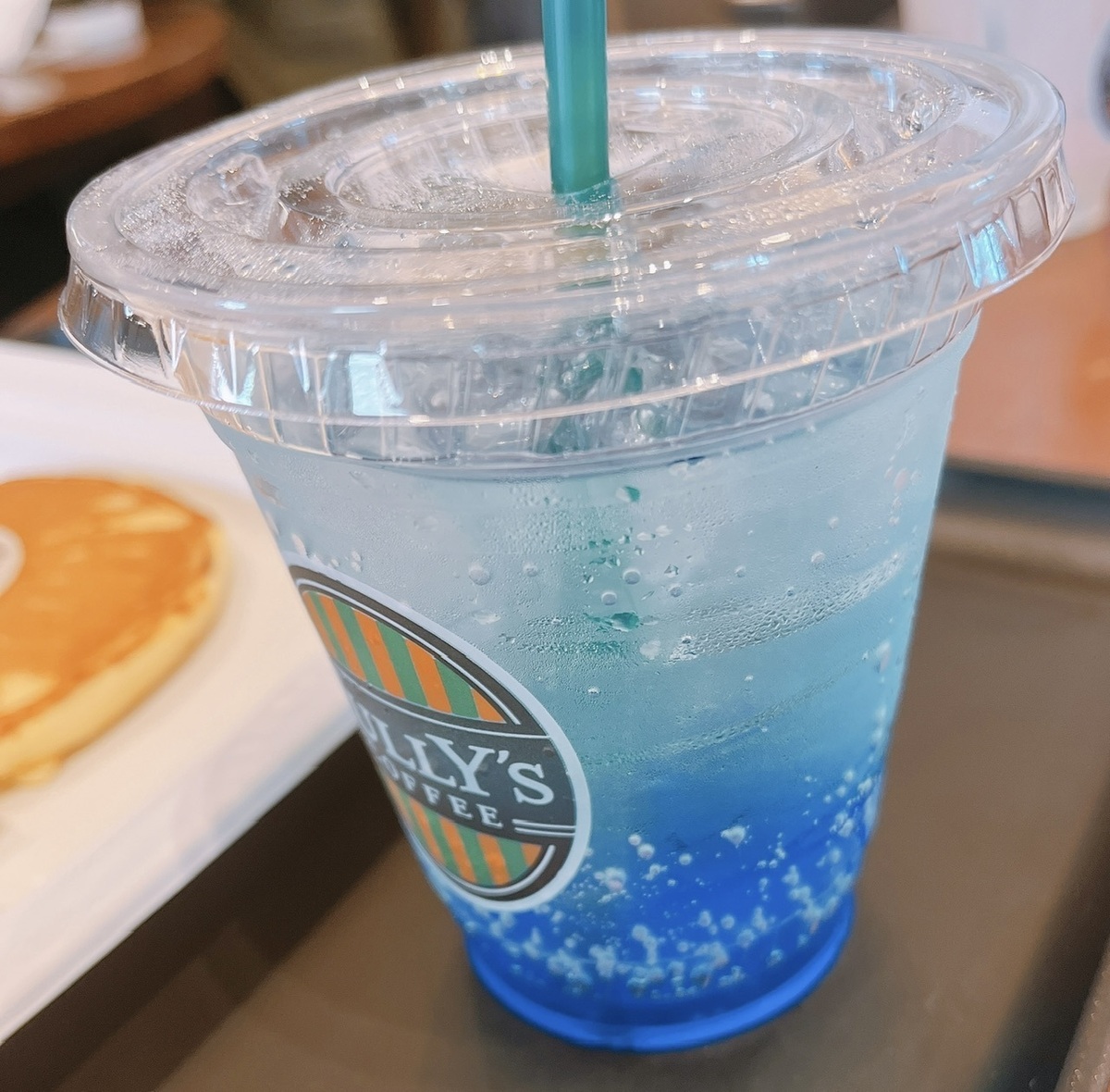 ドリンクは炭酸、ブルーが綺麗ですね❣️