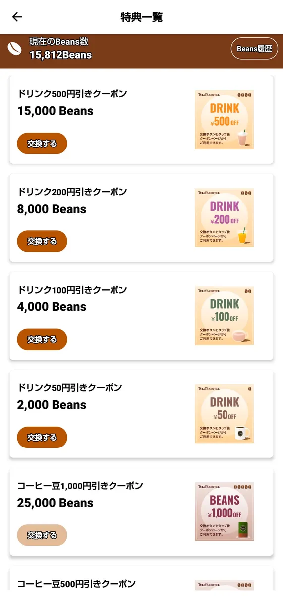 投稿を表示15000Beansまで貯めてドリンク値引きに利用しています🎶