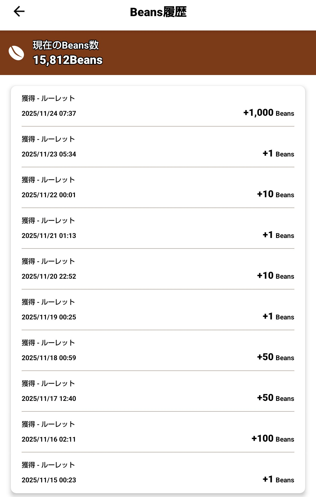 私も19日に1000Beansが出てようやく15000Beans到達しました🌟