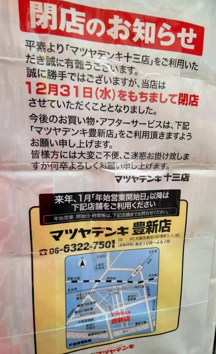 最近ヤマダデンキ自体の店舗の統廃合の流れからマツヤデンキの閉店が加速。