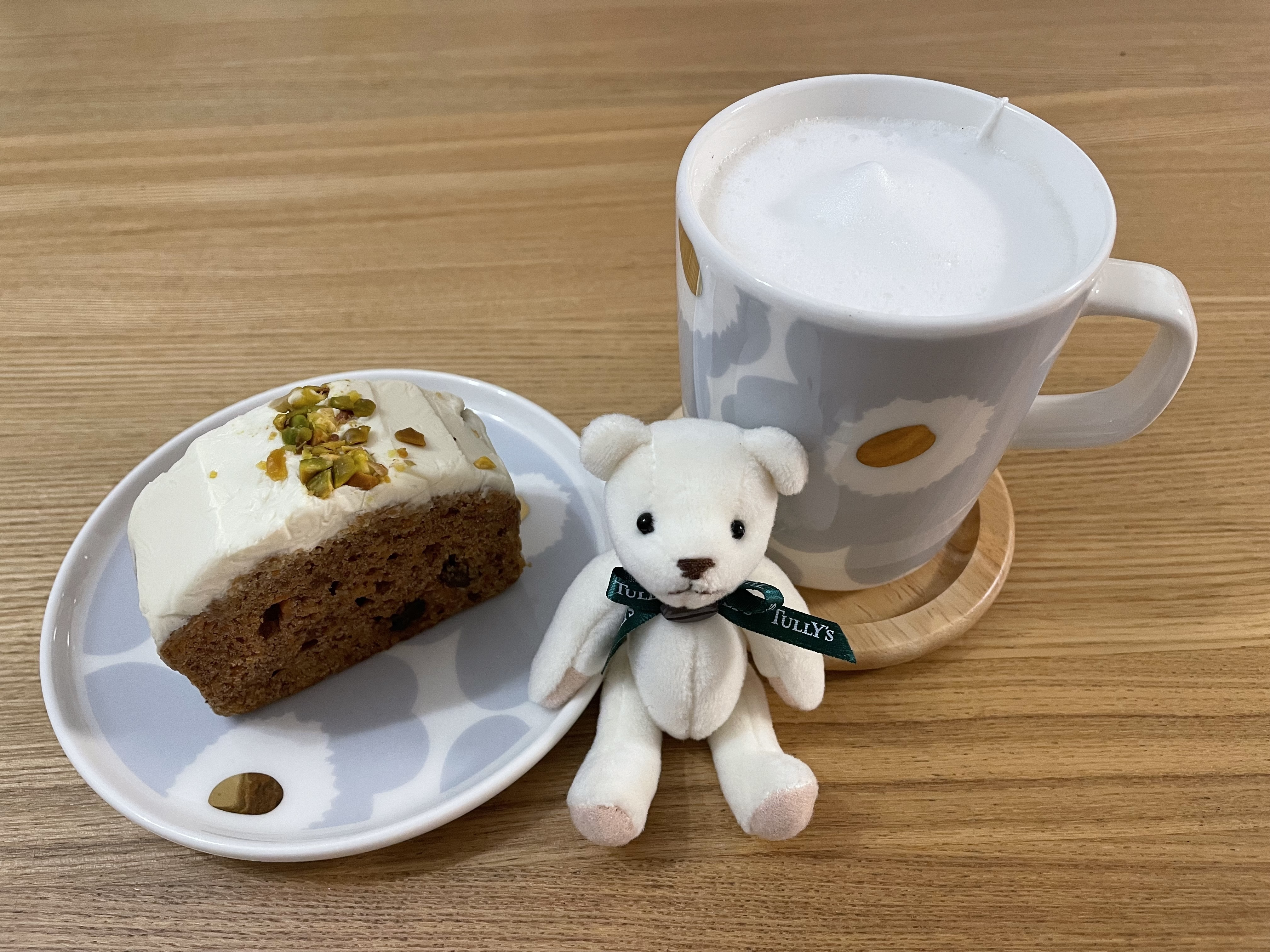 ケーキは、出かけた先で見つけたキャロットケーキ🥕好きなので見つけると買うのですが、タリーズさま、ぜひキャロケ発売してほしいです🙏(過去にもう出てたらごめんなさい)
