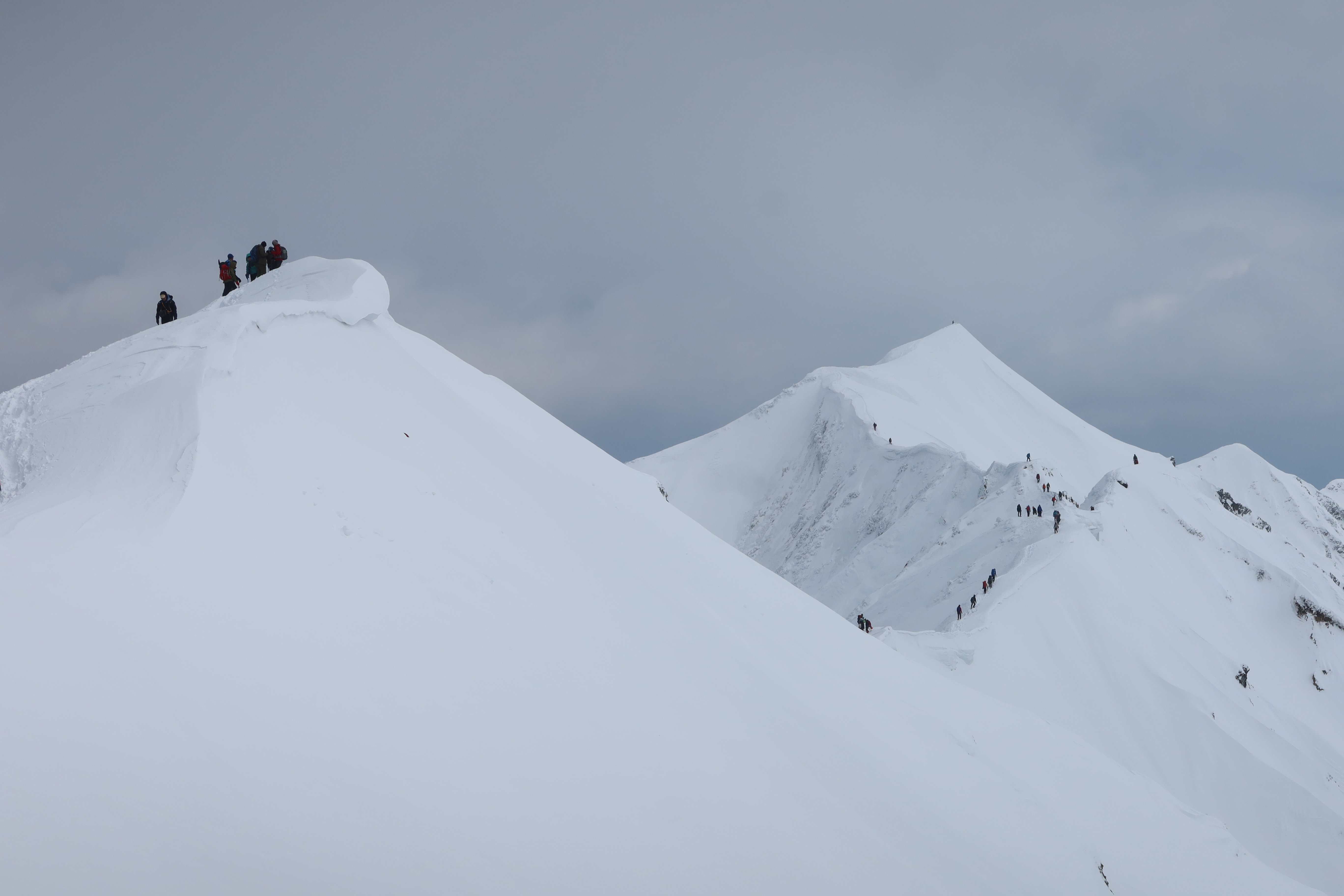 人物???と思って拡大して確認しました。綺麗な雪山ですね