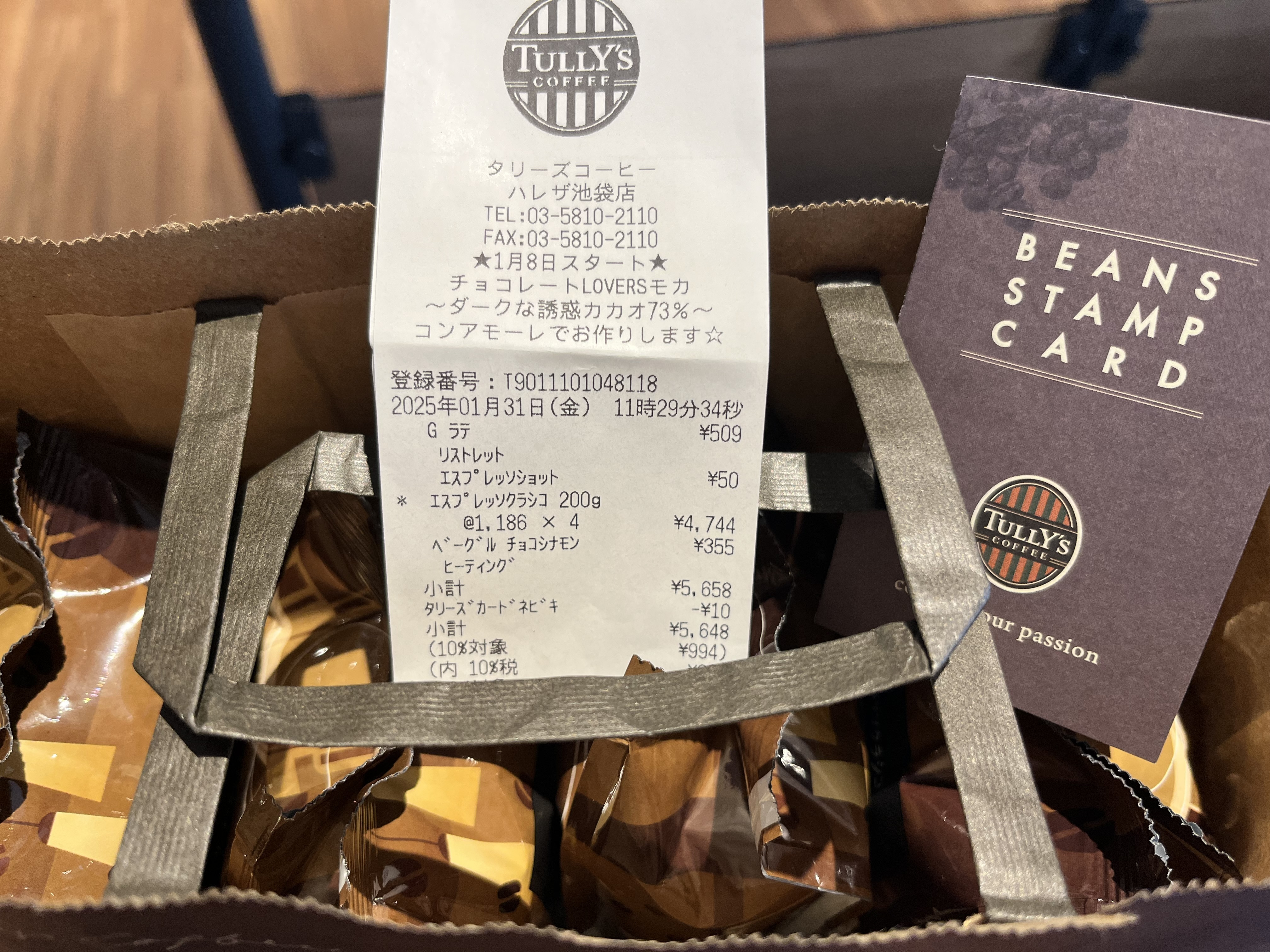 ベーグルを注文したことで、いつものダブルグランデラテ リストレットも自動的に注文