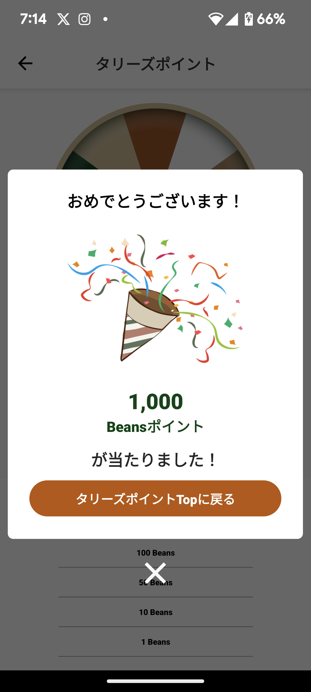私はこの間500Beans当たり、それまでにない最高点だったので大興奮しました❗️ もし1000Beans当たったらどうなってしまうかコワい気がしてず~っと後でも当たらなくてもいかなんて思います。