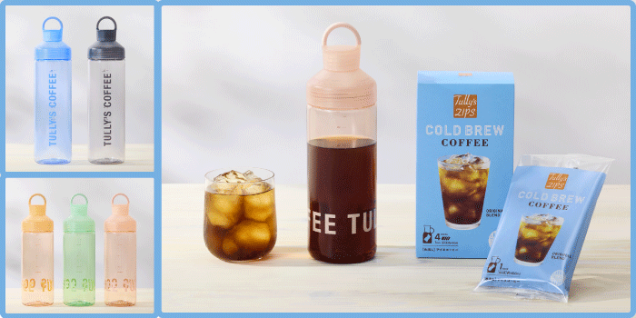 その他、2サイズ5種類のクリアカラーをそろえた「ウォーターボトル」や、水出しのアイスコーヒーとアイスティーが手軽に抽出できる「タリーズジップス コールドブリュー」など、わくわくするラインナップでみな様のご来店をお待ちしています😉