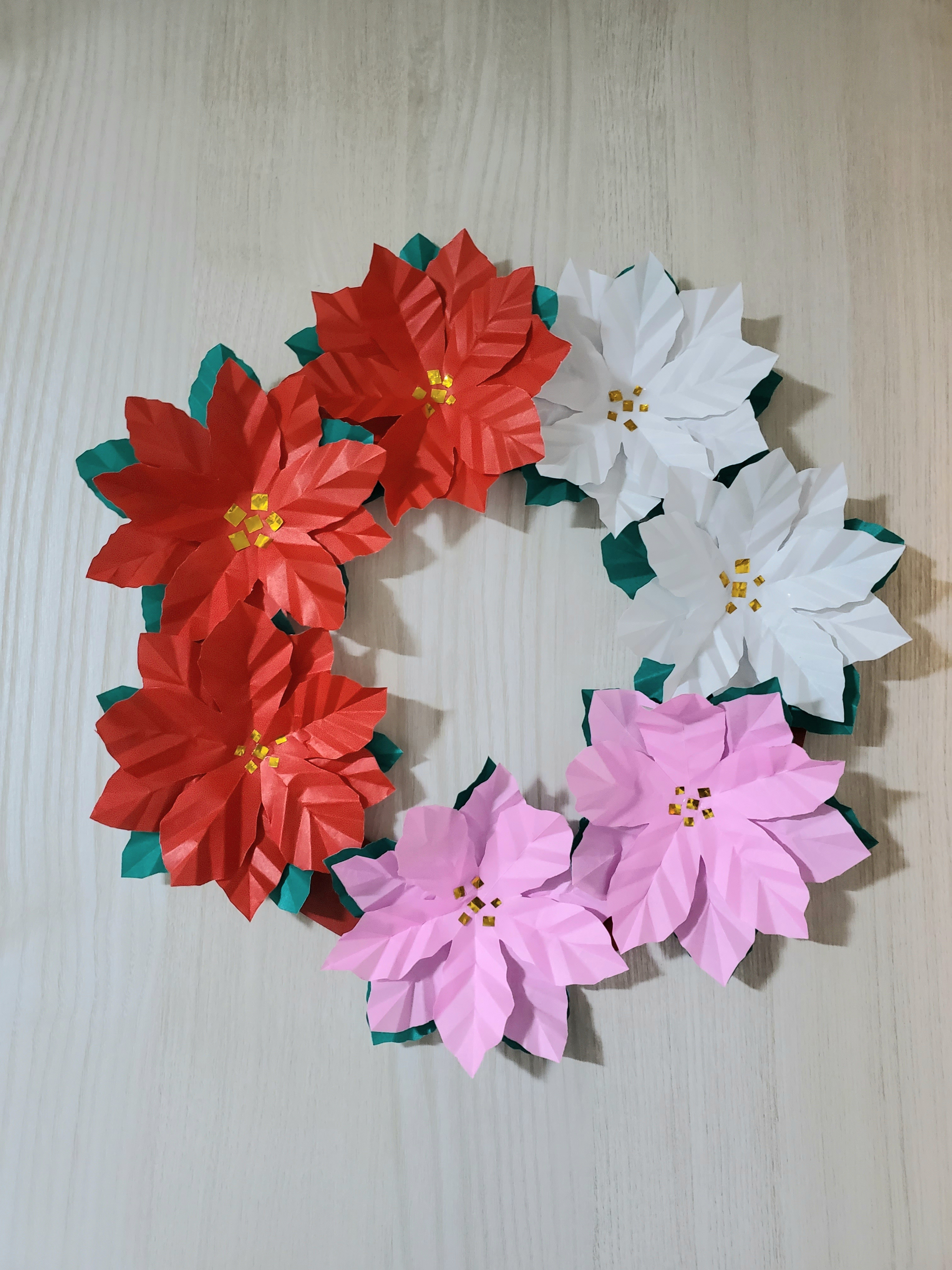 トップ > なんでも写真館 > 日々の写真 > 赤、ピンク、白 SKY 2024/12/07 12:49 赤、ピンク、白 クリスマスが近くなると 鉢植えで売ってるポインセチア それを折り紙でリースにしてみた。 15cm角折り紙を10cm角にカットして A4サイズの赤のカラーボール紙を ドーナツ型にカットした台紙に 手芸用ボンドでペタペタ。 真ん中のゴールドは金色の折り紙を 幅4㎜にカットしたのを正方形に チョキチョキしたのを貼りました。 サイズが半端に残った折り紙は勿体ないから 捨てずに取って置いてまた何かに使います。 いいね 共有する 共有する X facebook LINE リンクをコピー コメントする 3 件の返信 (新着順) ミュートしたユーザーの投稿です。 投稿を表示 ジーコ 2024/12/07 19:33 素晴らしい作品だけでなく残りのオリガミの活用、次が楽しみです いいね 返信する ミュートしたユーザーの投稿です。 投稿を表示 オブリ 2024/12/07 18:23 SKYさん ポインセチアを折り紙で 再現するとは… ポインセ…ポイントが高い!です。 いいね 返信する ミュートしたユーザーの投稿です。 投稿を表示 matusko 2024/12/07 13:58 折り紙で作るいろんなお花、いつも本当にお見事ですね✨ 次はどんな作品かといつも楽しみにしています。 いいね 返信する ミュートしたユーザーの投稿です。 投稿を表示 SKY 2024/12/07 16:30 matusko 嬉しいコメントありがとうございます😊 とっても励みになります、次はどんなの作ろうかな。 いいね 返信する