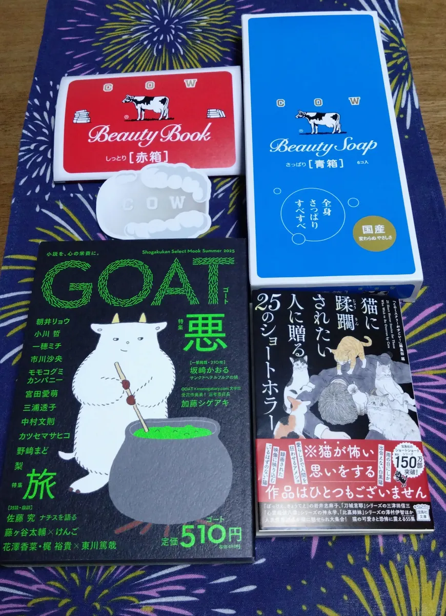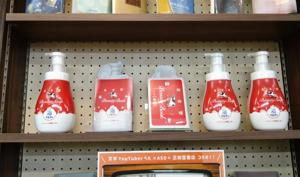 現在公式オンラインショップに於いても牛乳石鹸コラボブックカバー付きセットを販売中。