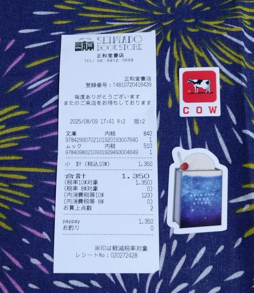 ブックカバー、いいですね。本屋さんが減ってオリジナルカバーを出しているお店は貴重です。
