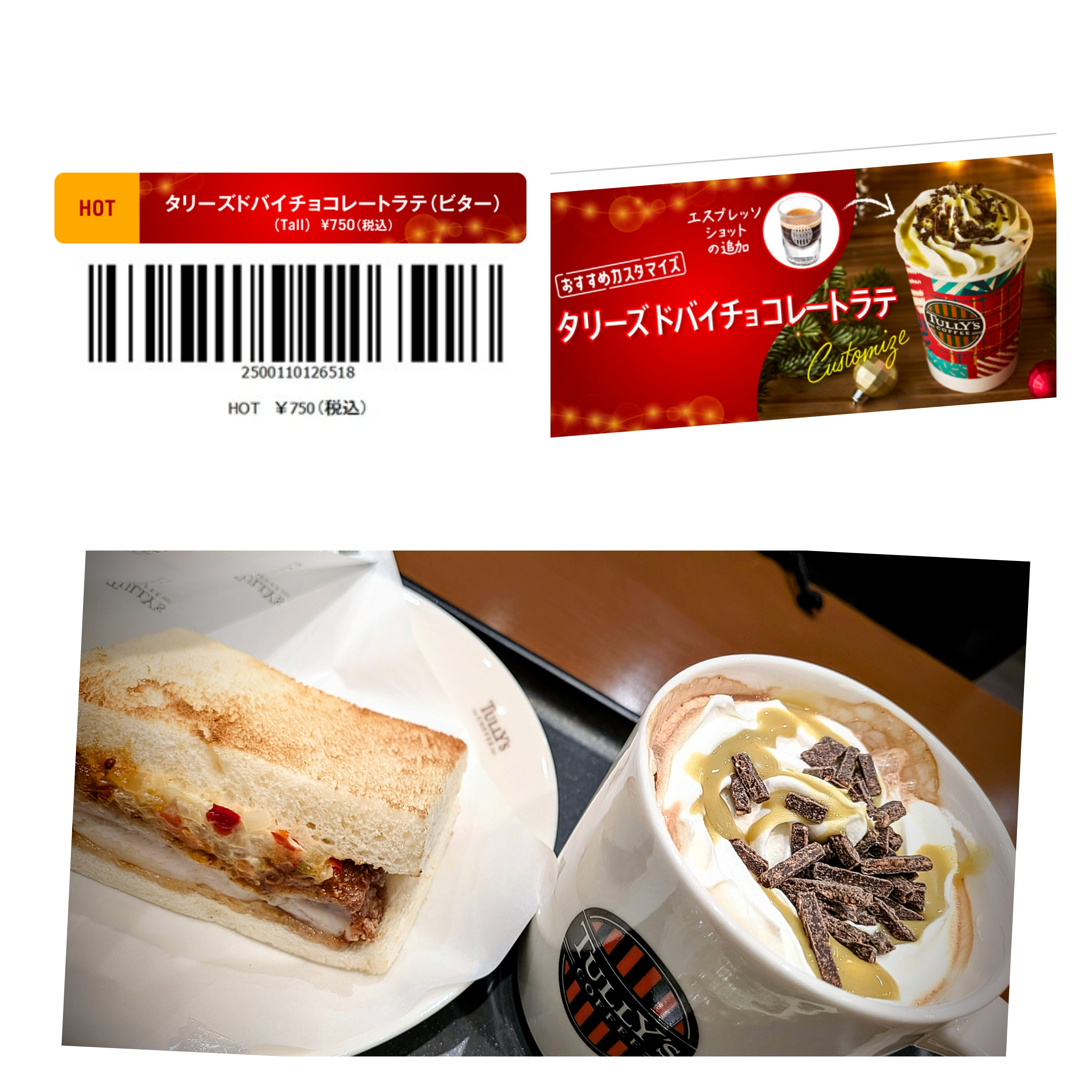 タリーズバイチョコレートラテ(ショット追加🥃)をバーコードで注文、便利です。