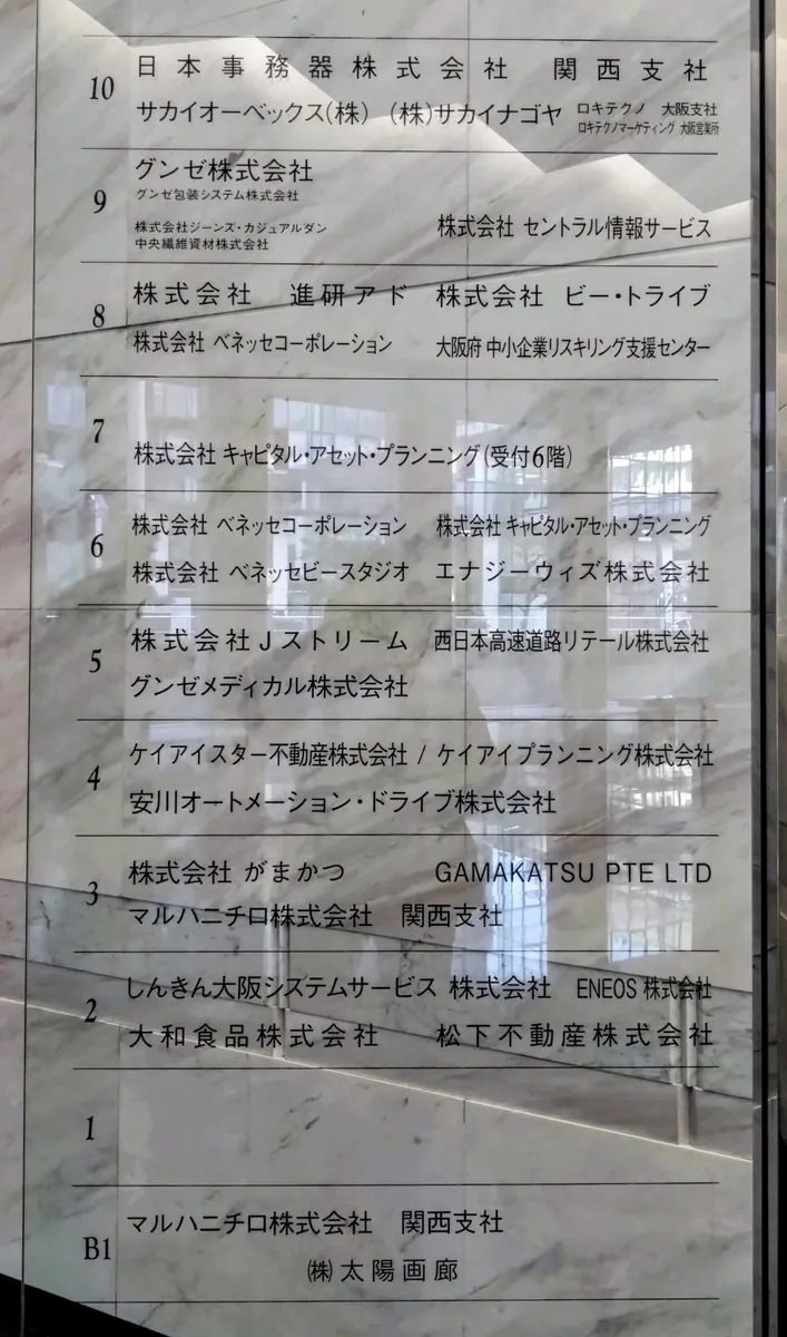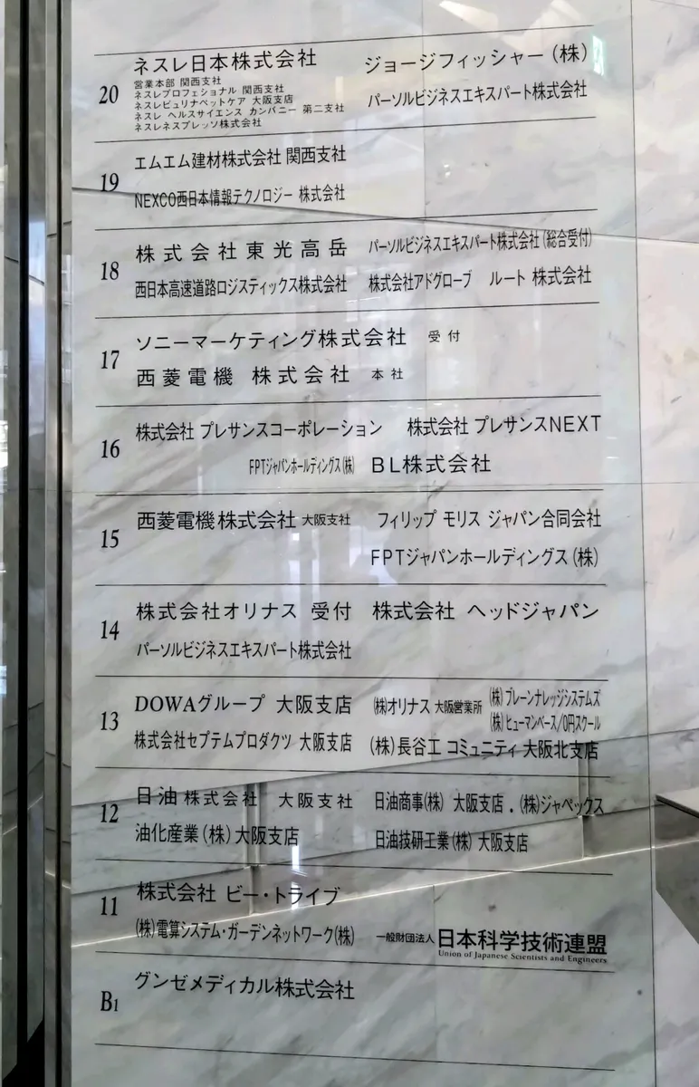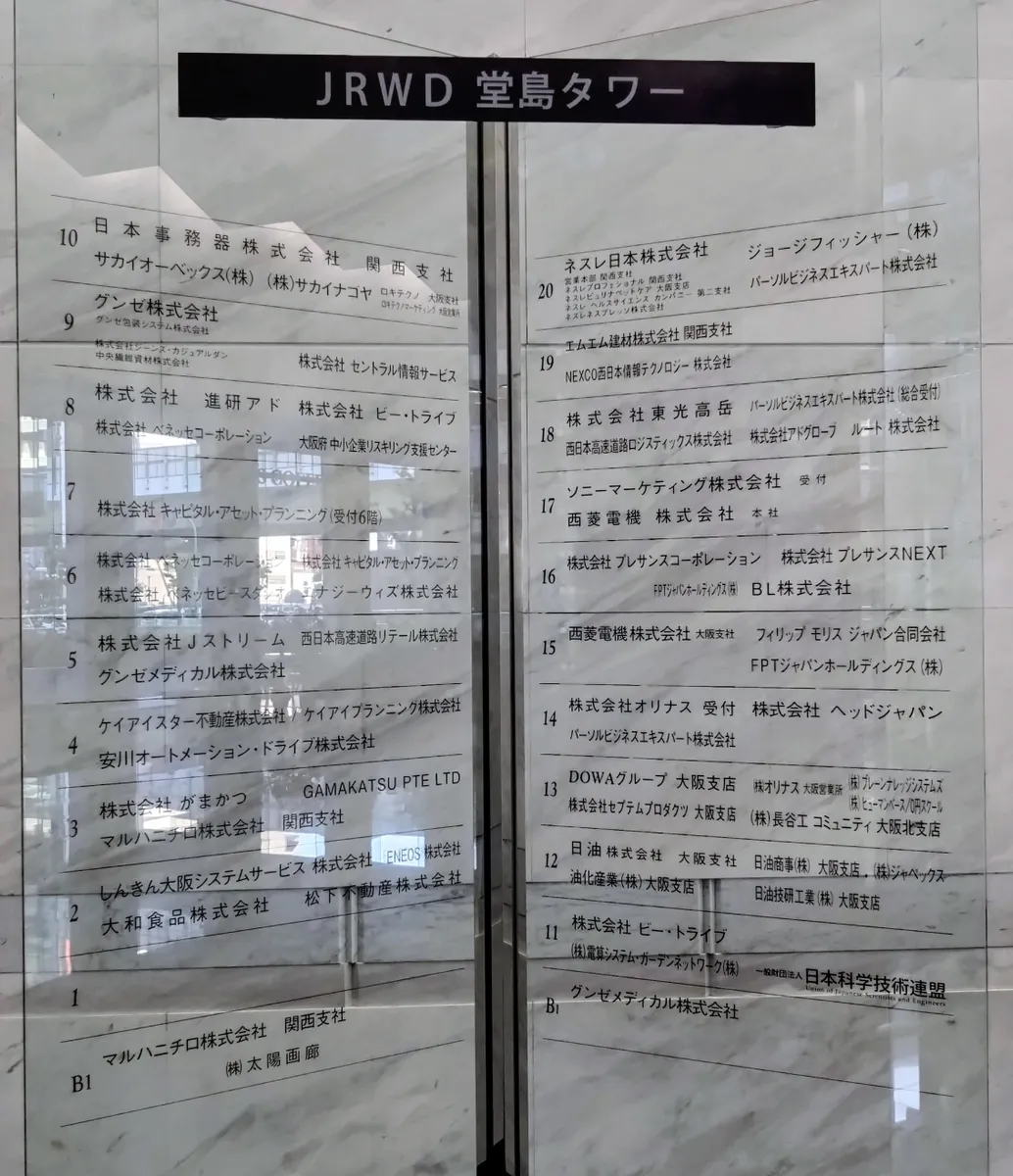 このオフィスビルの20階は入居企業はタリーズ競合企業ですね〜