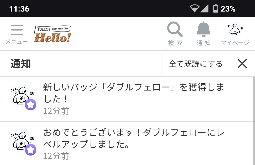 トップ > なんでも写真館 > 氣付いたら!! にゃにゃ 2024/08/26 11:36 氣付いたら!! いつの間にか ダブルフェローにレベルアップしていました! 嬉しい! 20,000pt溜めると ダブルフェローに レベルアップするようです 次のレベルアップまで10,000pt また、長く楽しい道のりの 開幕です! ダブルフェロー TULLY'S ハロタリ レベルアップ いいね 共有する 共有する X facebook LINE リンクをコピー コメントする 7 件の返信 (新着順) ミュートしたユーザーの投稿です。 投稿を表示 フェローみほ 2024/08/27 09:31 おめでとうございます😊 にゃにゃさんとのコメントのやりとりはホントのおしゃべりみたいで楽しみです これからもよろしくお願いします😉 いいね 返信する ミュートしたユーザーの投稿です。 投稿を表示 にゃにゃ 2024/08/27 12:37 フェローみほ みほさん 嬉しいお言葉ありがとうございます! わたしもずっと接客業でしたので お客様とのおしゃべり好きなのです こらからも 色々と、ご教授くださいませ いいね 返信する ミュートしたユーザーの投稿です。 投稿を表示 ジーコ 2024/08/26 19:27 ダブルフェローへのご昇格おめでとうございます いいね 返信する ミュートしたユーザーの投稿です。 投稿を表示 にゃにゃ 2024/08/26 20:23 ジーコ ありがとうございます! いつもジーコさんのコメント 励みになります! いいね 返信する ミュートしたユーザーの投稿です。 投稿を表示 Canard2020 2024/08/26 19:23 おめでとう御座います🍾㊗️! いいね 返信する ミュートしたユーザーの投稿です。 投稿を表示 にゃにゃ 2024/08/26 20:22 Canard2020 ありがとうございます! シャンパンでお祝いですね! いいね 返信する ミュートしたユーザーの投稿です。 投稿を表示 amored1sk 2024/08/26 17:57 にゃにゃ おめでとうございます🎊 にゃにゃさんの、いつも丁寧で楽しい投稿やコメントが、こうして形に残る事、素晴らしいですよね✨ ワタクシも、レベルアップする度に、皆さんの投稿にコメントさせて頂いた事や、拙いながらも頑張って投稿させて頂いた諸々が思い出されて、幸せな気持ちになります(o^―^o)ニコニコ♪ いいね 返信する ミュートしたユーザーの投稿です。 投稿を表示 にゃにゃ 2024/08/26 18:43 amored1sk 嬉しいお言葉、ありがとうございます! ある意味 自己満足なような形で 書きたいように自由に書いている投稿で 喜んでいただけるとは とても幸せです! amored1skさんは 人の氣持ちに寄り添える 思い遣りに溢れる方ですね いいね 返信する ミュートしたユーザーの投稿です。 投稿を表示 ポイ 2024/08/26 17:00 ⭐️⭐️ダブルフェロー昇格✨おめでとうございます👏🏻👏🏻👏🏻 いいね 返信する ミュートしたユーザーの投稿です。 投稿を表示 にゃにゃ 2024/08/26 18:39 ポイ 氣付いたら いつの間にかレベルアップしておりました! ありがとうございます! いいね 返信する ミュートしたユーザーの投稿です。 投稿を表示 ralikkuma 2024/08/26 14:56 おめでとうございます🎊🎉㊗️ 「千里の道も一歩から」 着実にレベルアップされているので次のステップもそんなに遠くないですよ😉 いいね 返信する ミュートしたユーザーの投稿です。 投稿を表示 にゃにゃ 2024/08/26 15:06 ralikkuma 千里の道も一歩から その通りですね! ありがとうございます! 次のレベルアップも、楽しみです! いいね 返信する ミュートしたユーザーの投稿です。 投稿を表示 matusko 2024/08/26 12:04 凄い‼️おめでとうございます☺️✨✨ いいね 返信する ミュートしたユーザーの投稿です。 投稿を表示 にゃにゃ 2024/08/26 12:14 matusko 一番乗りのコメント ありがとうございます! 嬉しいです!! いいね 返信する