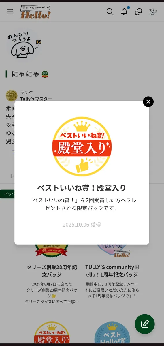 「ベストいいね賞」それも殿堂入りなんて、おめでとうございます🎊