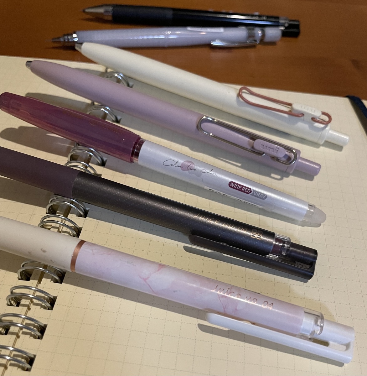 ↓juice up激推ししますが、ジェットストリームでも、サラサでも、かけるならなんでもよしでもOKですっ!
