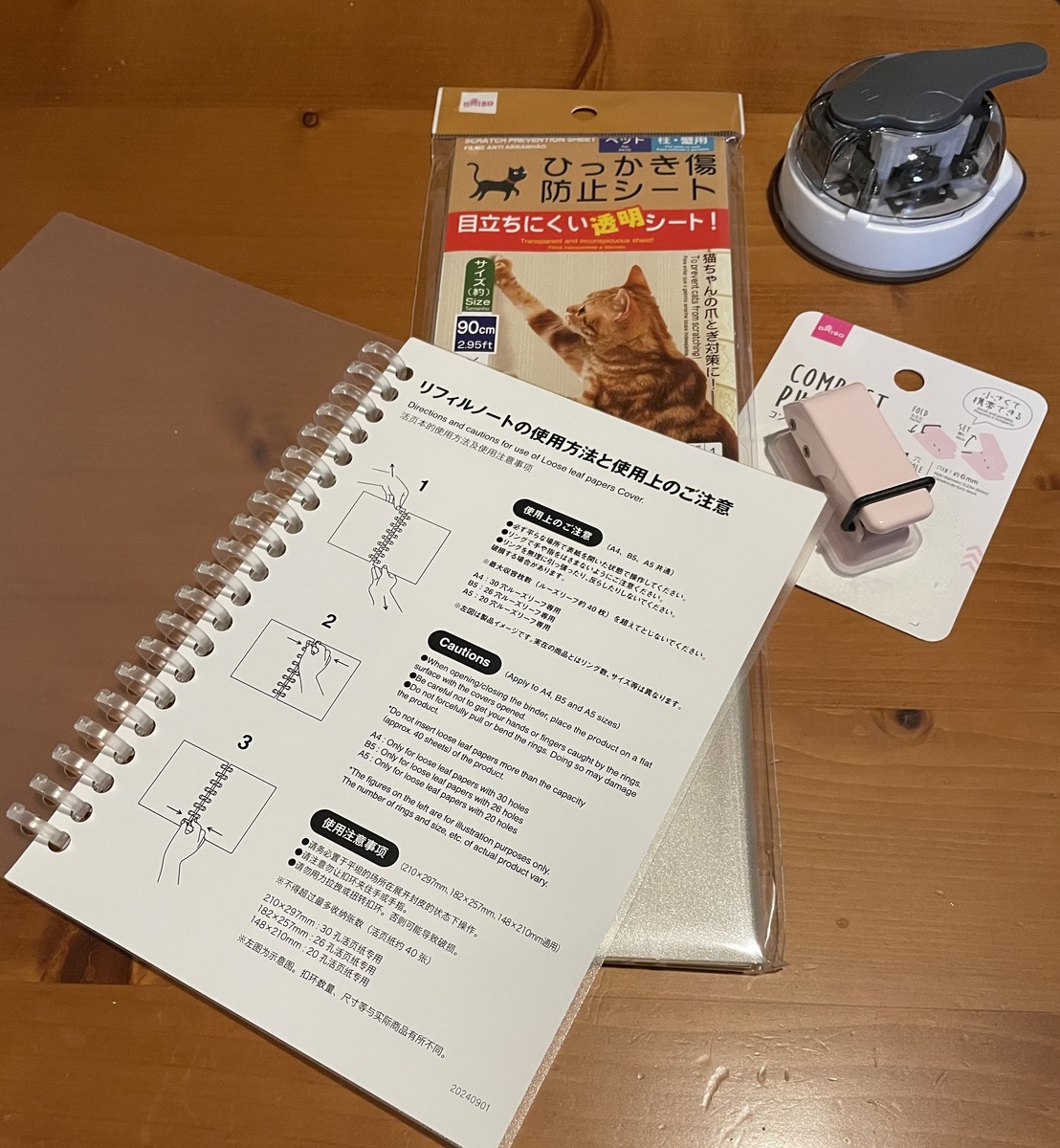 ダイソーのひっかき傷防止シート(半透明シール。厚手で丈夫、ペット売り場にあります)