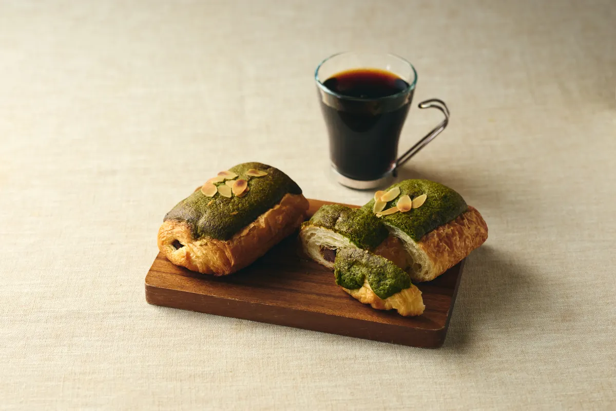 フランス伝統のペストリーに、和素材の抹茶をプラスした和洋折衷の味わい。ほんのり香る抹茶と、コクのあるチョコの甘みが広がります。