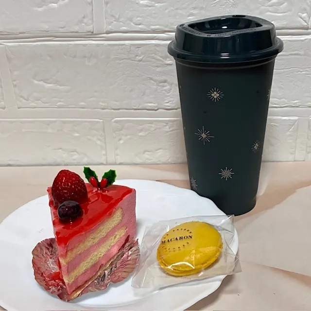フレーズ というイチゴのジュレがキレイなクリスマスケーキと、マカロン(シトロン🍋)、エチオピアモカ ゲイシャのペアリングで(*´ч`*)