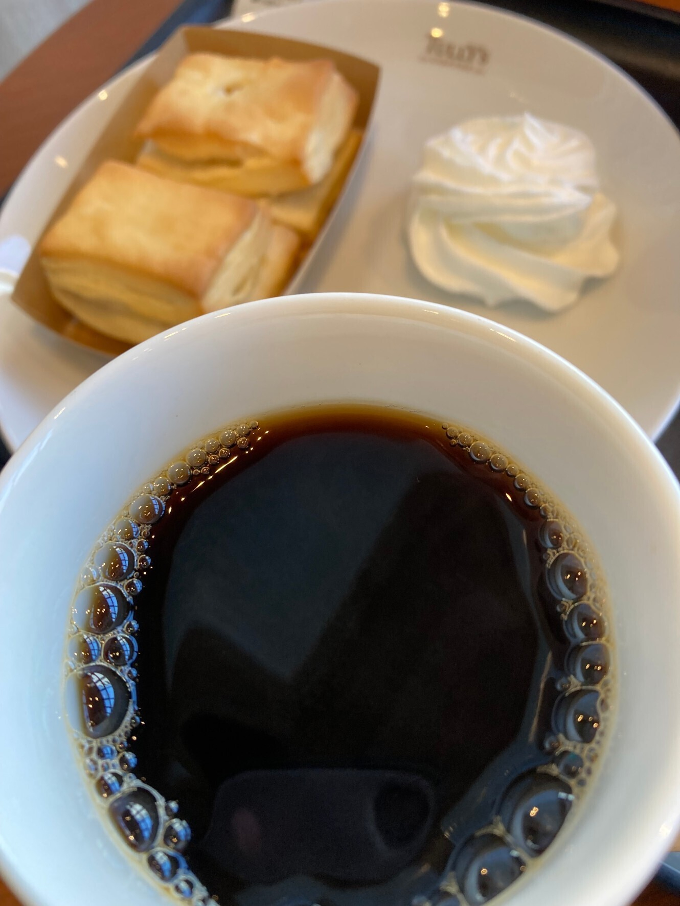昨日も特等席で最近ヘビロテ中のミルクビスケット with ホイップ を堪能してきました。