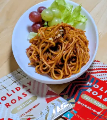 手作りナポリタン😍に、「タリーズホリデーロースト」を合わせていただいた1枚✨「ナポリタンとコーヒー」喫茶店のようで何だかわくわくしてしましました😆