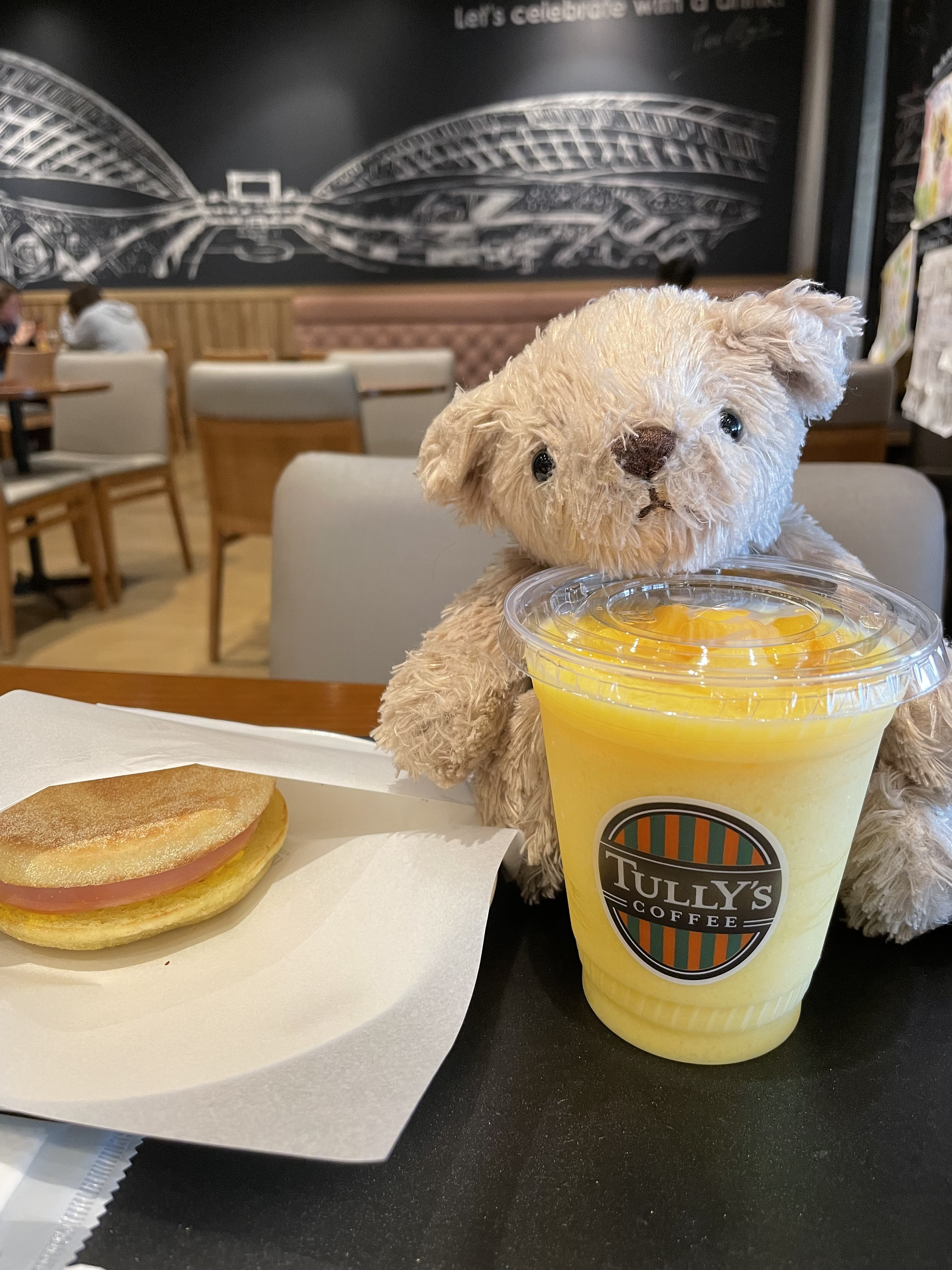 投稿を表示季節感、マンゴーで感じる幸せですね☀️くまちゃんの表情もとてもかわいい🧸、くるくる🌀効果?
