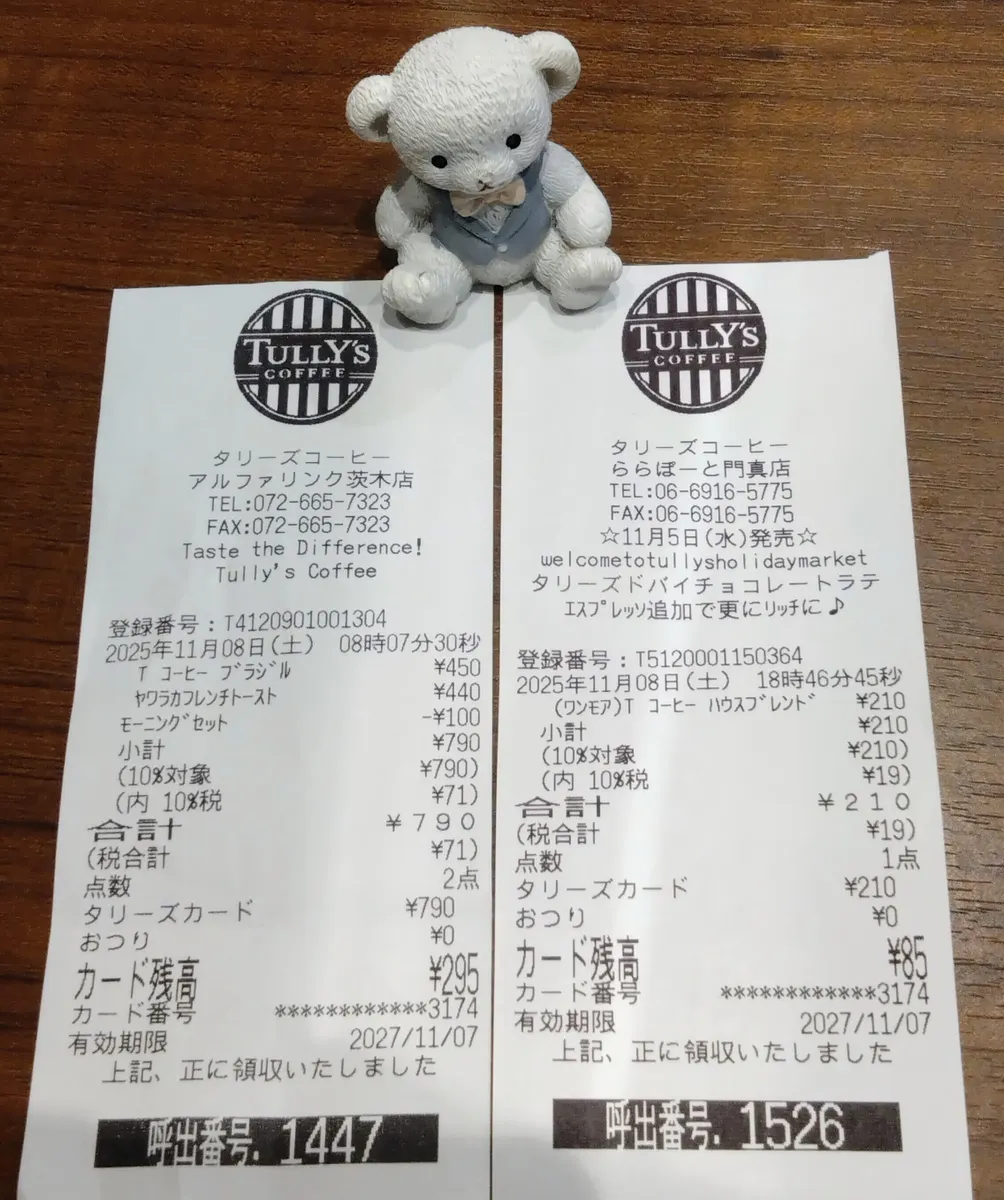 まだ車で移動できるのでいいですが、ショッピングモール内のタリーズ店舗が駐車場から遠い場合は多少しんどいなと感じる年齢になってきました😥