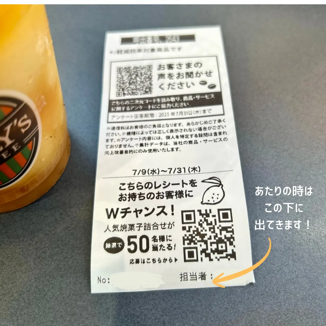 さっそく対象商品である「&TEA 瀬戸内レモンのはちみつリモンチェッロ フローズンティー」を購入したレシートに、「あたり」が出たかチェック…!!!
