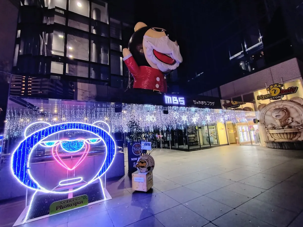 左のらいよんチャンのフォトスポットで記念撮影していた20代の女子2人組が「やっぱ大阪ってスゴイ〜!最高!!」ってはしゃぎ回ってました。