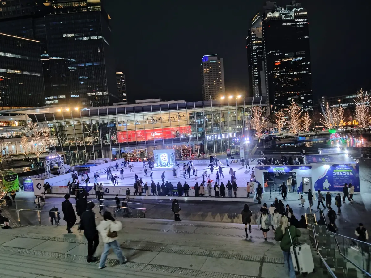 押し合いへし合い移動しますが、ツリーを必死に撮影しようとその場をかたくなに動こうとしない人、ドリンクやフードを持って移動しようとする人などが入り乱れ、いつぶつかって服をよごされたり怪我をしても不思議ではないような有り様😱