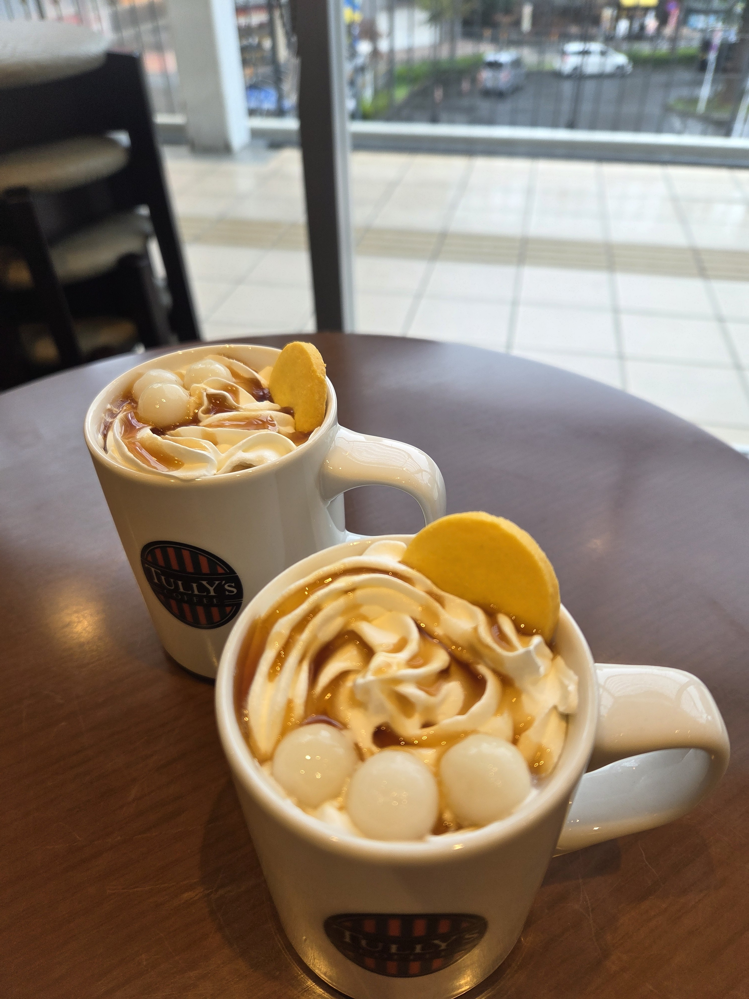 もちもちの白玉とみたらしがアクセントになったカフェラテ…!白玉増量で