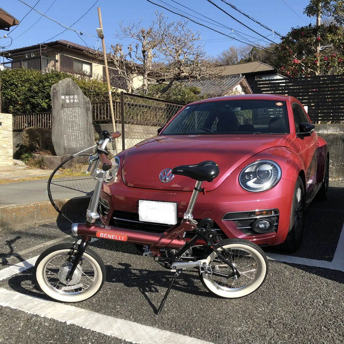 ビートルと自転車の色がお揃いで、とってもお洒落ですね🩷