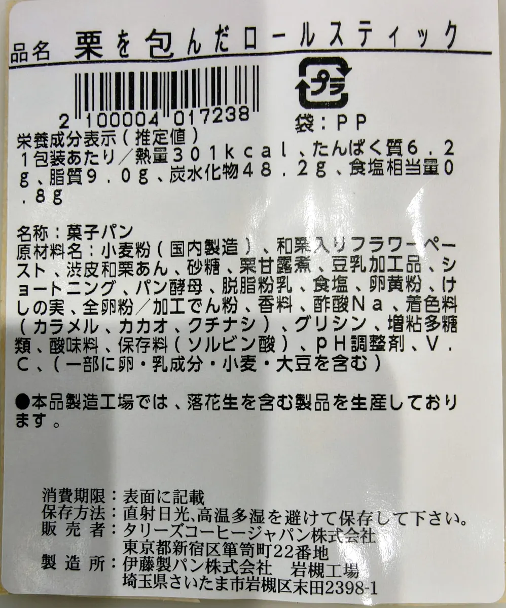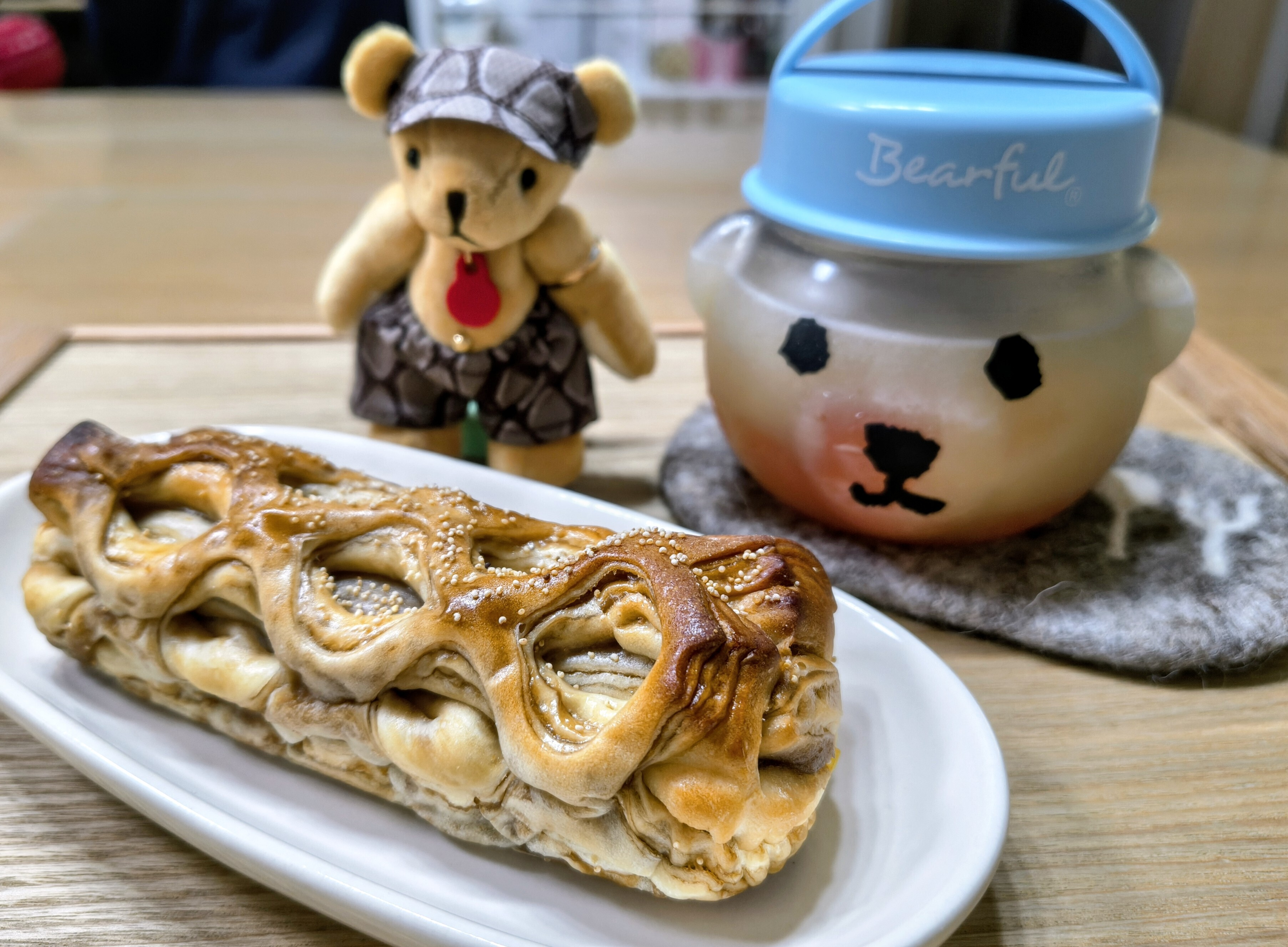 一緒にテイクアウトした栗のロールスティックは栗餡のお味や、カットされた栗甘露煮の食感が良く、ロール形状なので食べ易く、軽くリベイク(クロワッサンモ-ドで2分)して栗の風味を味わいました。