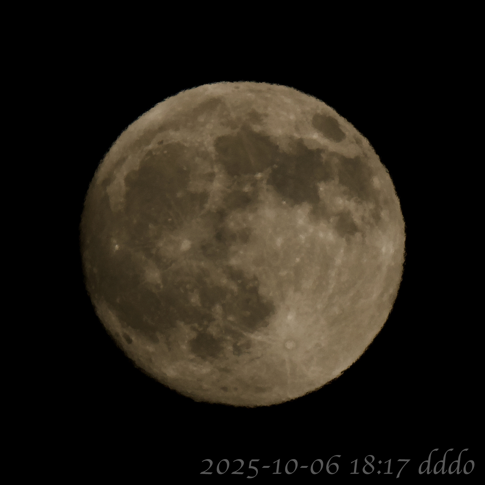 トップ > なんでも写真館 > 日々の写真 > 中秋の名月^^ どどど 2025/10/06 19:32 中秋の名月^^ 薄い雲の向こう側で微妙な朧月、かつ上空の風が強いのか、流れの速い川の底を見ている様な雰囲気ですが、中秋の名月として楽しむには、こう言うのも風情があって良いかもですね^^ なお、満月は(日本時間の)明日の昼頃なので、地球の裏側の方々にしっかり見てもらいましょう^^ 肉眼では明日の朝見ても明日の夜見ても同じくらいまんまるに見えると思います^^ (今日のこの写真だと左の方が少し欠けて見えますね^^) 月 空 中秋の名月 いいね 共有する 共有する X facebook LINE リンクをコピー コメントする 0 件の返信 (新着順)