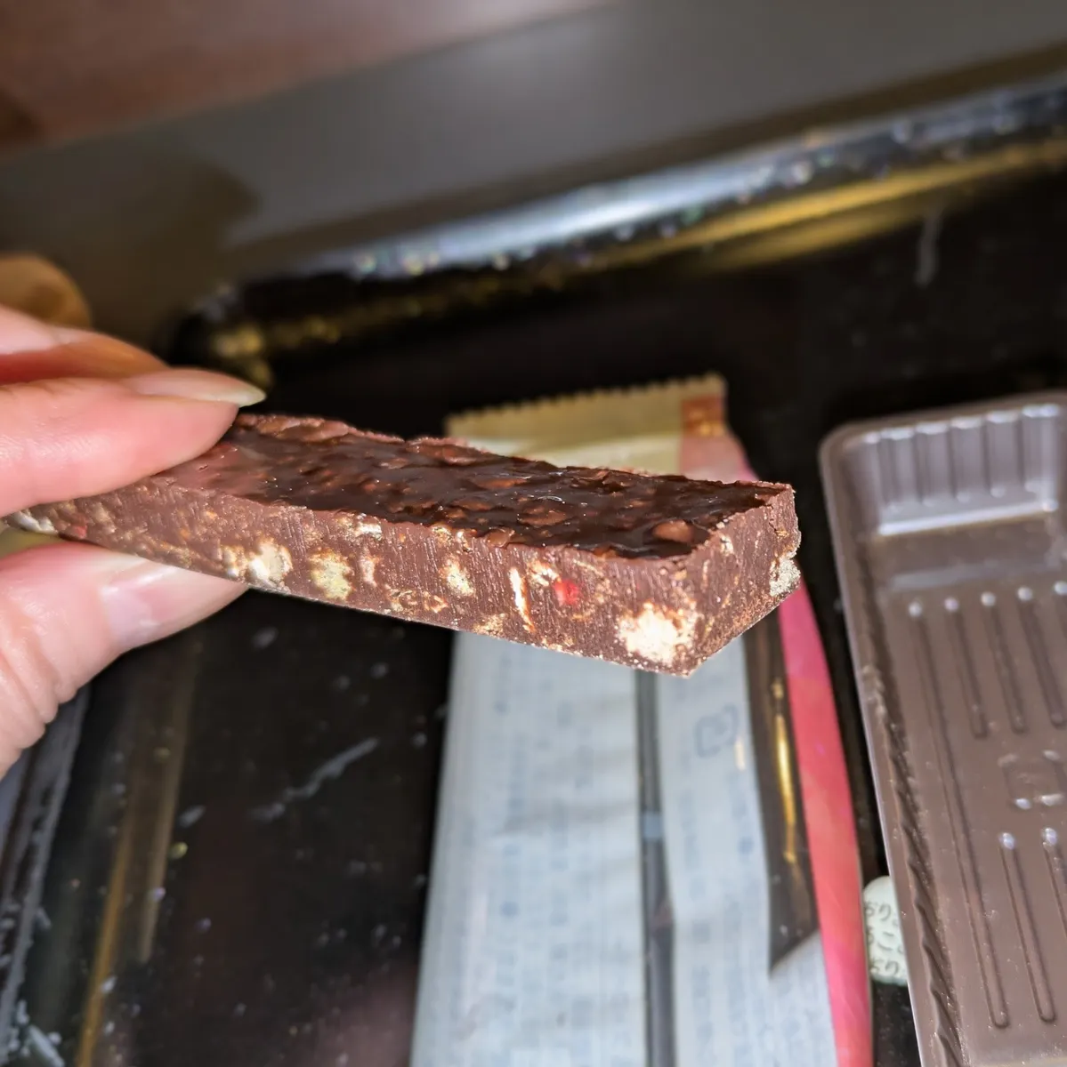 ビターチョコのクランチにストロベリーのアクセント これは鉄板の組み合わせ 美味しいです😍