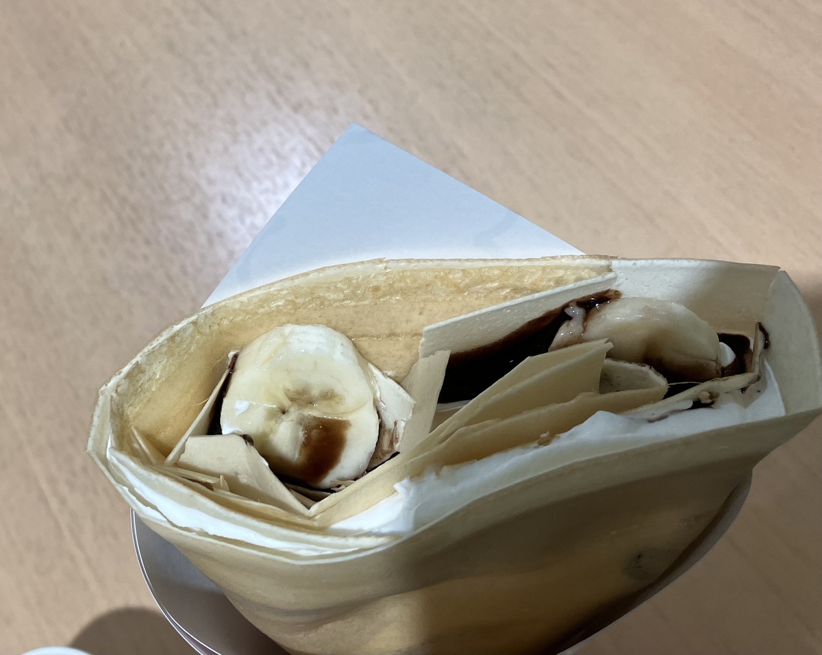 フードコートにあったクレープ屋さんへ!チョコバナナクレープが懐かしい味わいでした。360円でとても満足🎁