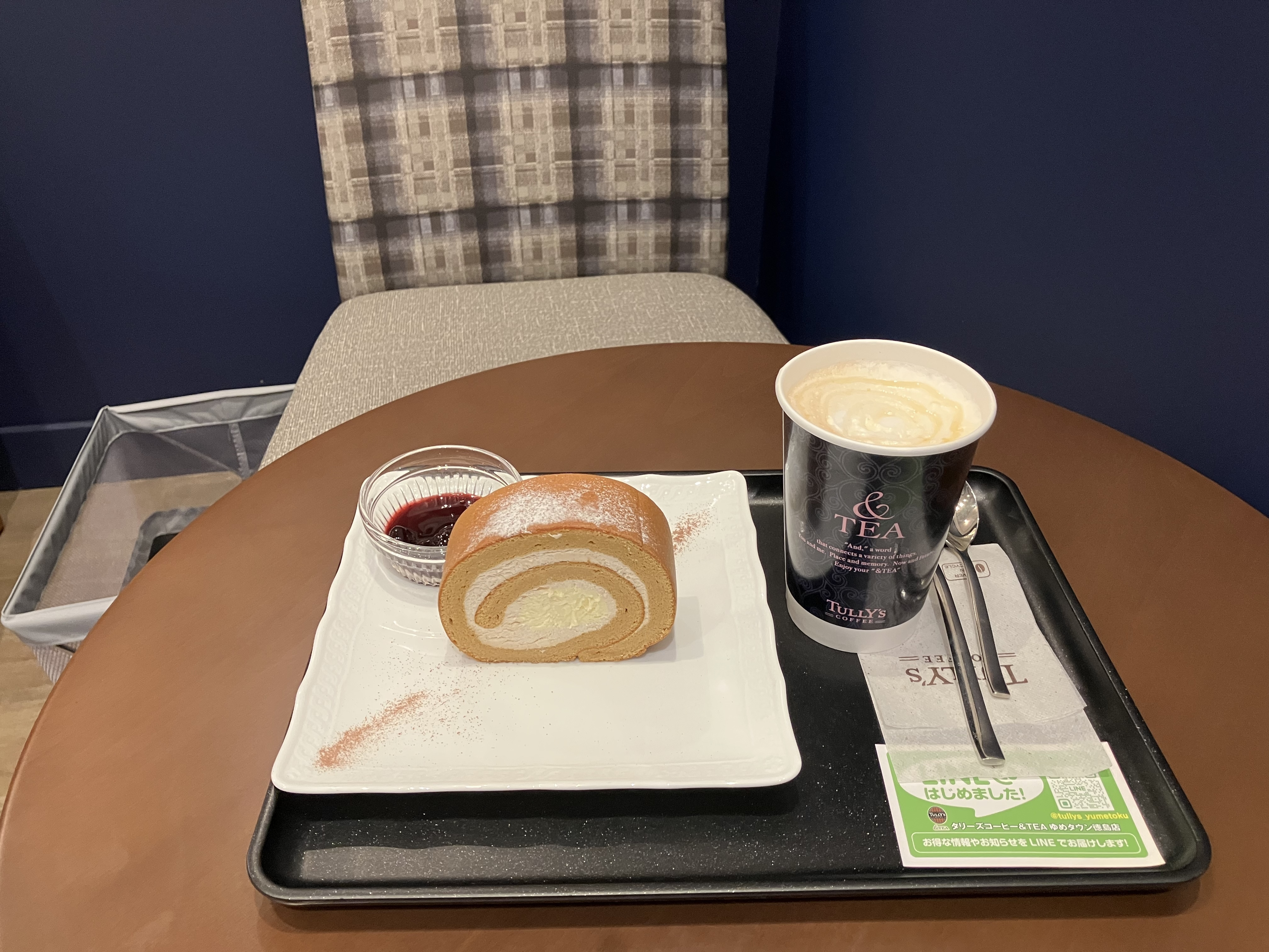 ロールケーキとハニーロイヤルミルクティーのセットにしました。香り良く、華やかな組み合わせでした!
