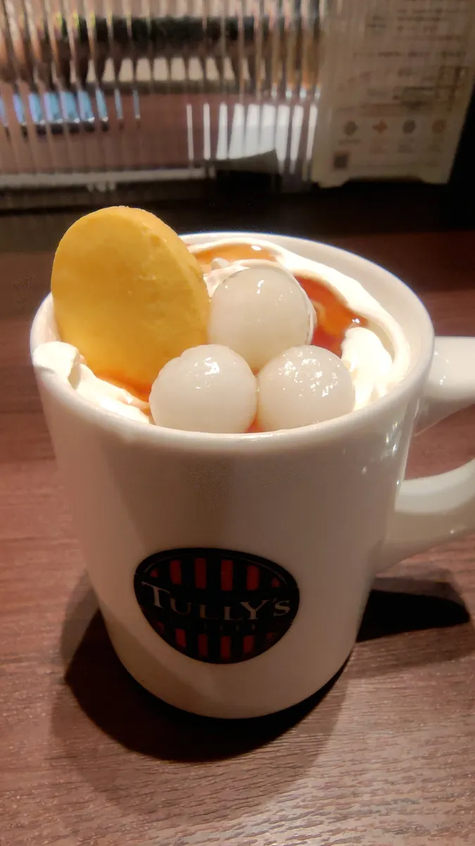 今日の月見は手前から立体的に眺めるスタイルですね。中ほどに絞られたホイップクリームが満月クッキーと白玉を支えていました。まさにお月見団子的な完ぺきなバランス!