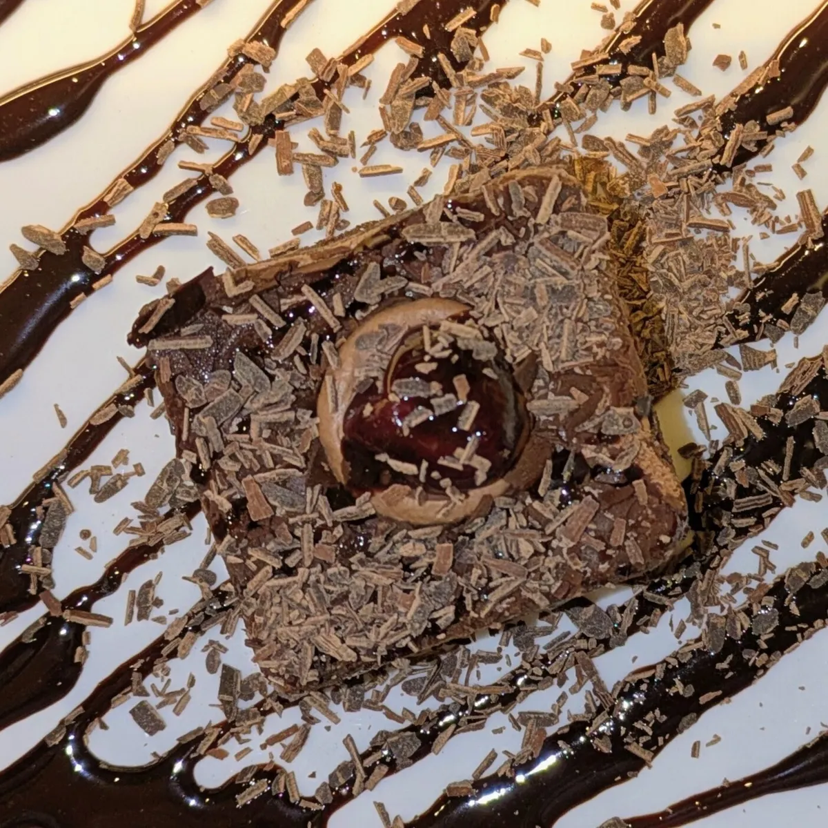 心配していたアルコールは全く感じませんでした チョコレートケーキですね チェリーもシロップ漬けかな?オトナ味を期待していた方には物足りないかも