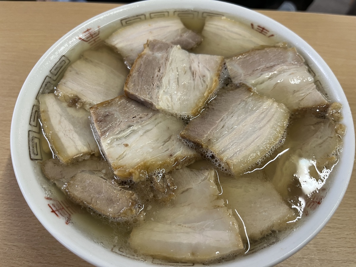 画像からはわかりづらいですが、透明な豚骨スープです