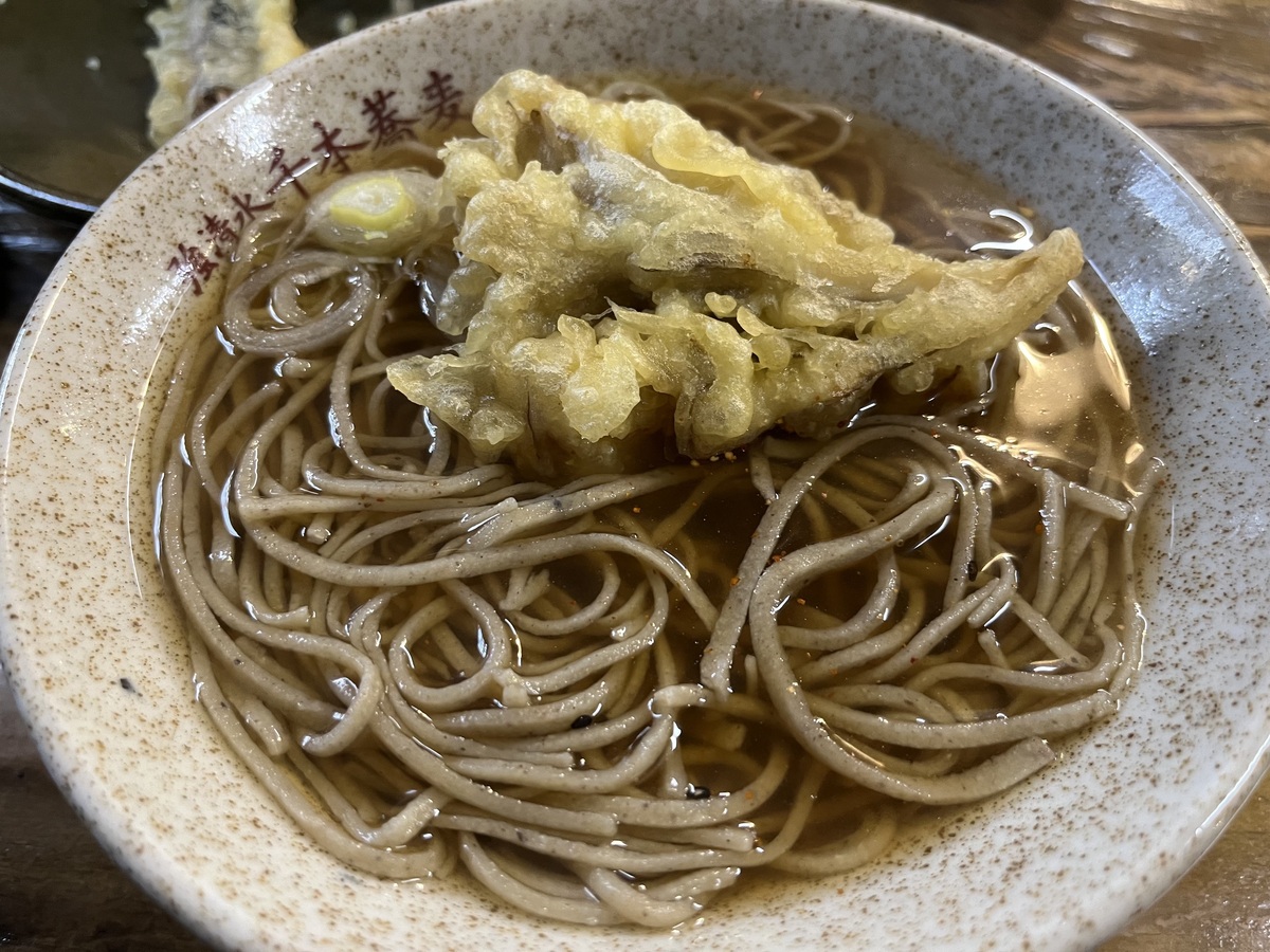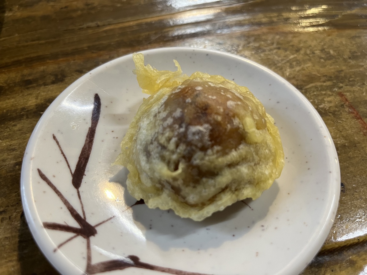 初めての時は(別の)蕎麦屋に知人と行き、椎茸の天ぷらだと思って口に入れたら、なんと💦中から餡子が😂ヤラレタ