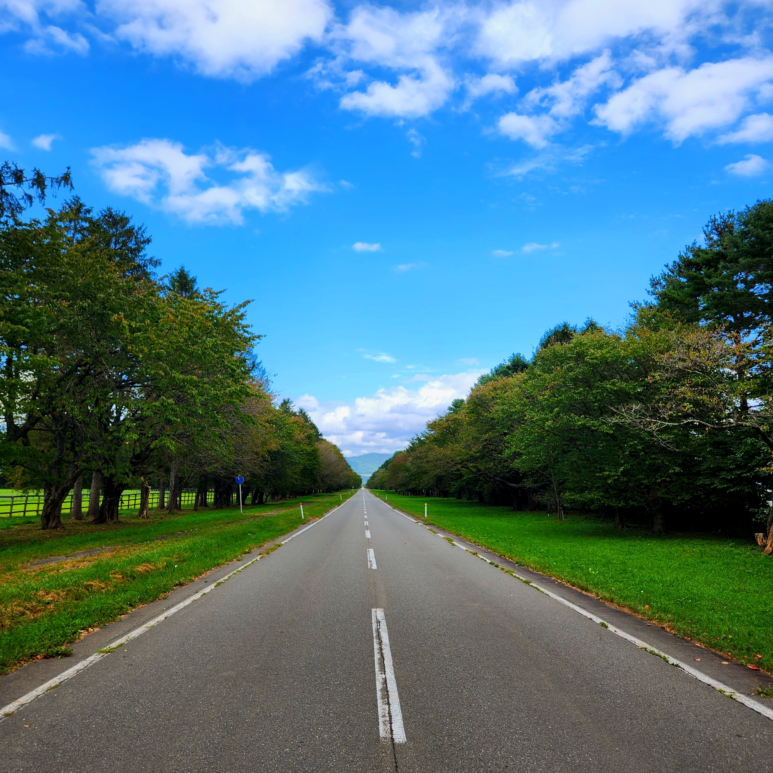 投稿を表示緑の並木から延びた青空へと続く真っ直ぐな道。最高に癒されます🌿𓂃◌𓈒𓐍