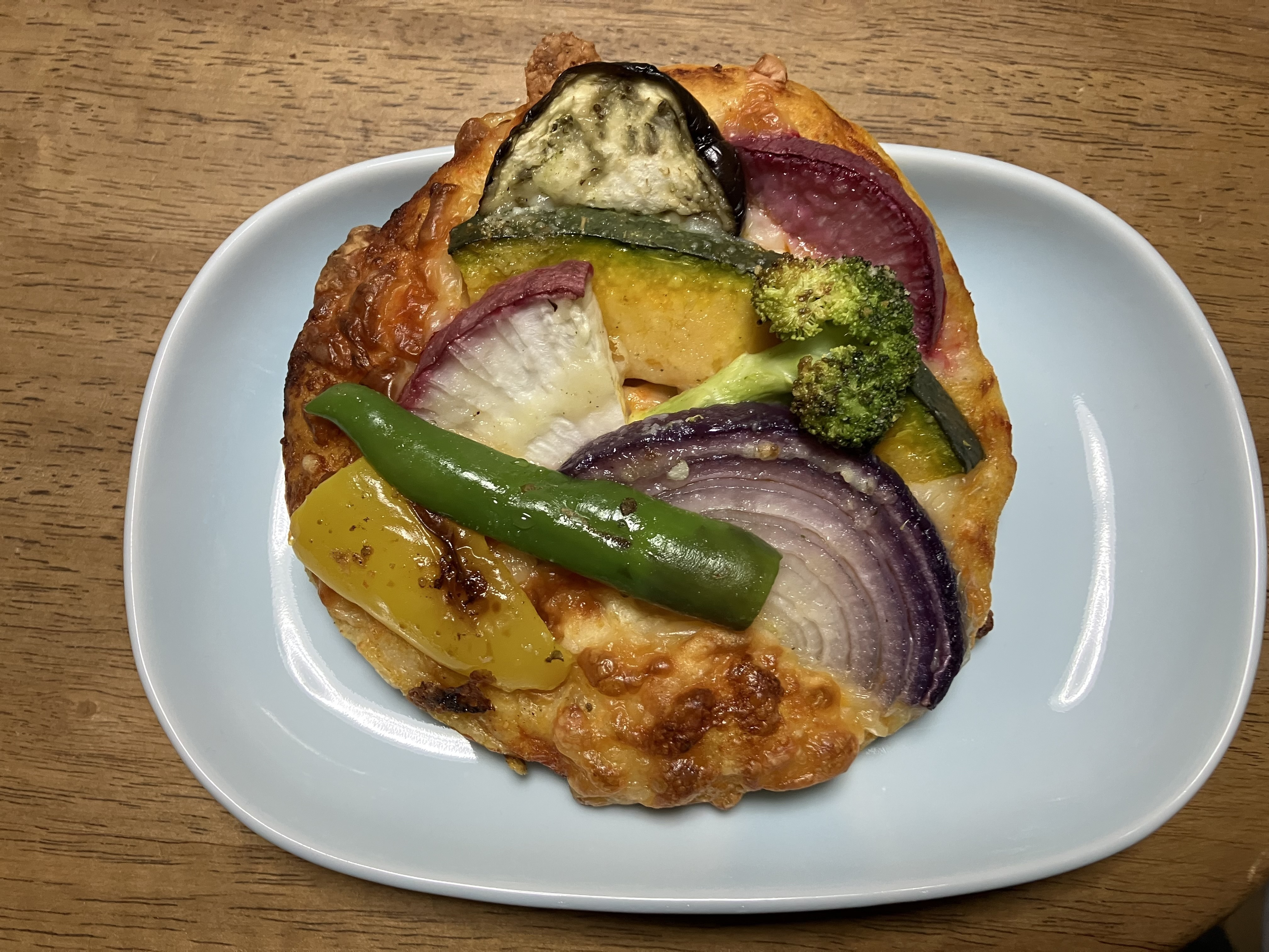 野菜たっぷり🥦🧅なカラフルピザ(トップ画像)とイカスミとチーズのパン↓🍞