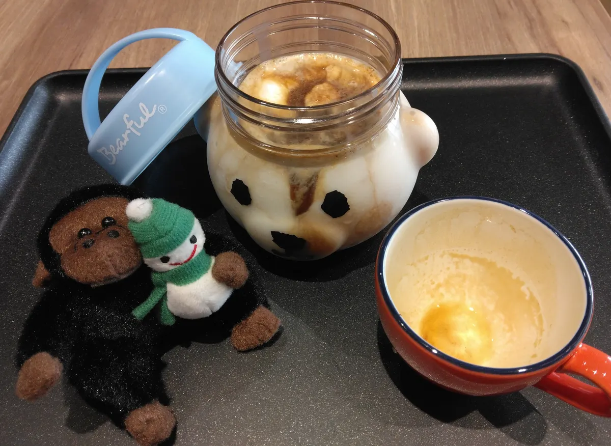 他の方の投稿を見ると、溺れる用のショットは紙コップでの提供のようでしたので、エスプレッソカップとハグミーボトルを持参しました。