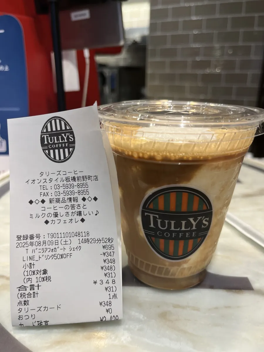 今日はLINEお友達登録した半額チケットを使ってバニラアフォガードシェイクをうれしい❣️348円で飲ませてもらいました