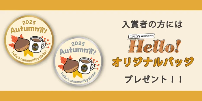 入賞者の方には、『TULLY'S community Hello!』内で装着できるオリジナルバッジをプレゼントします。