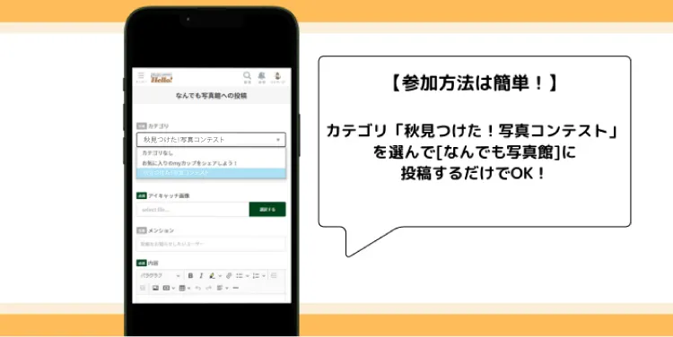 2. カテゴリ欄から「秋見つけた!写真コンテスト」を選択