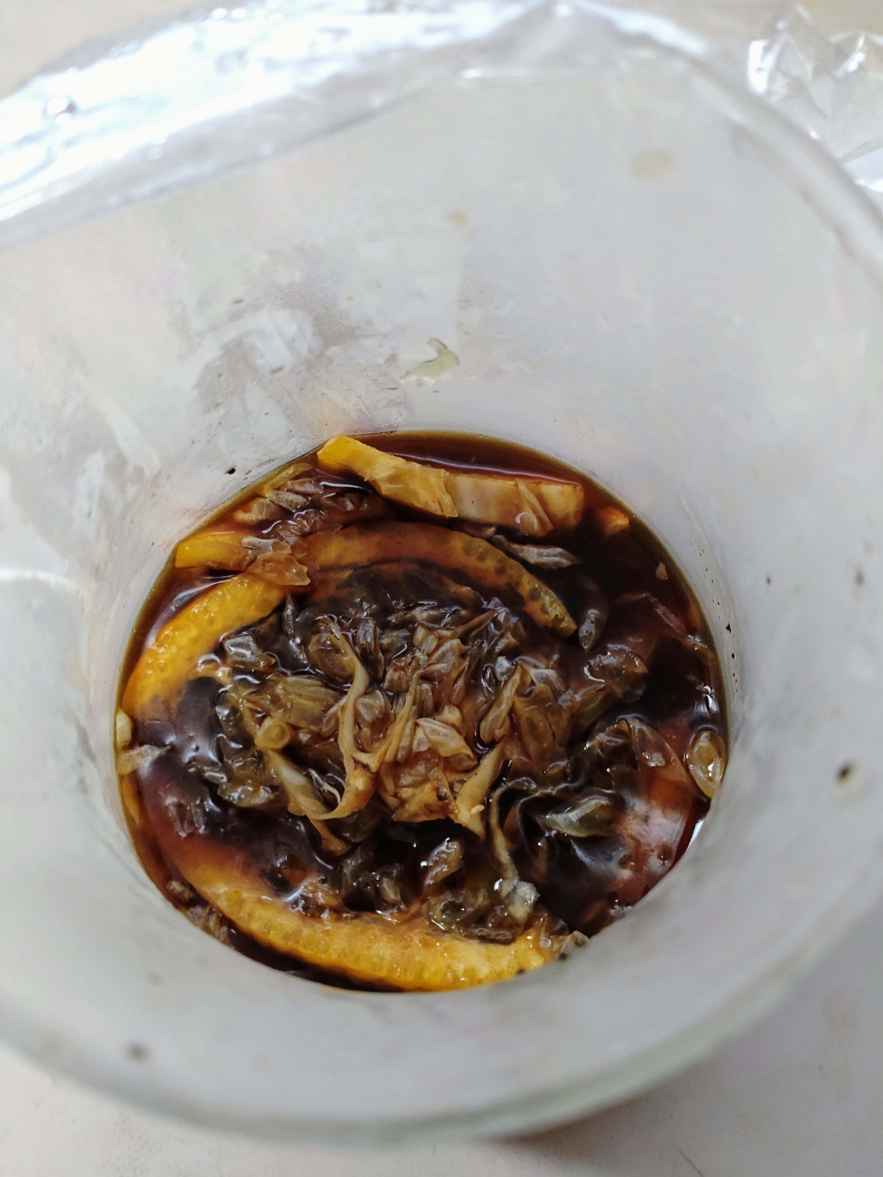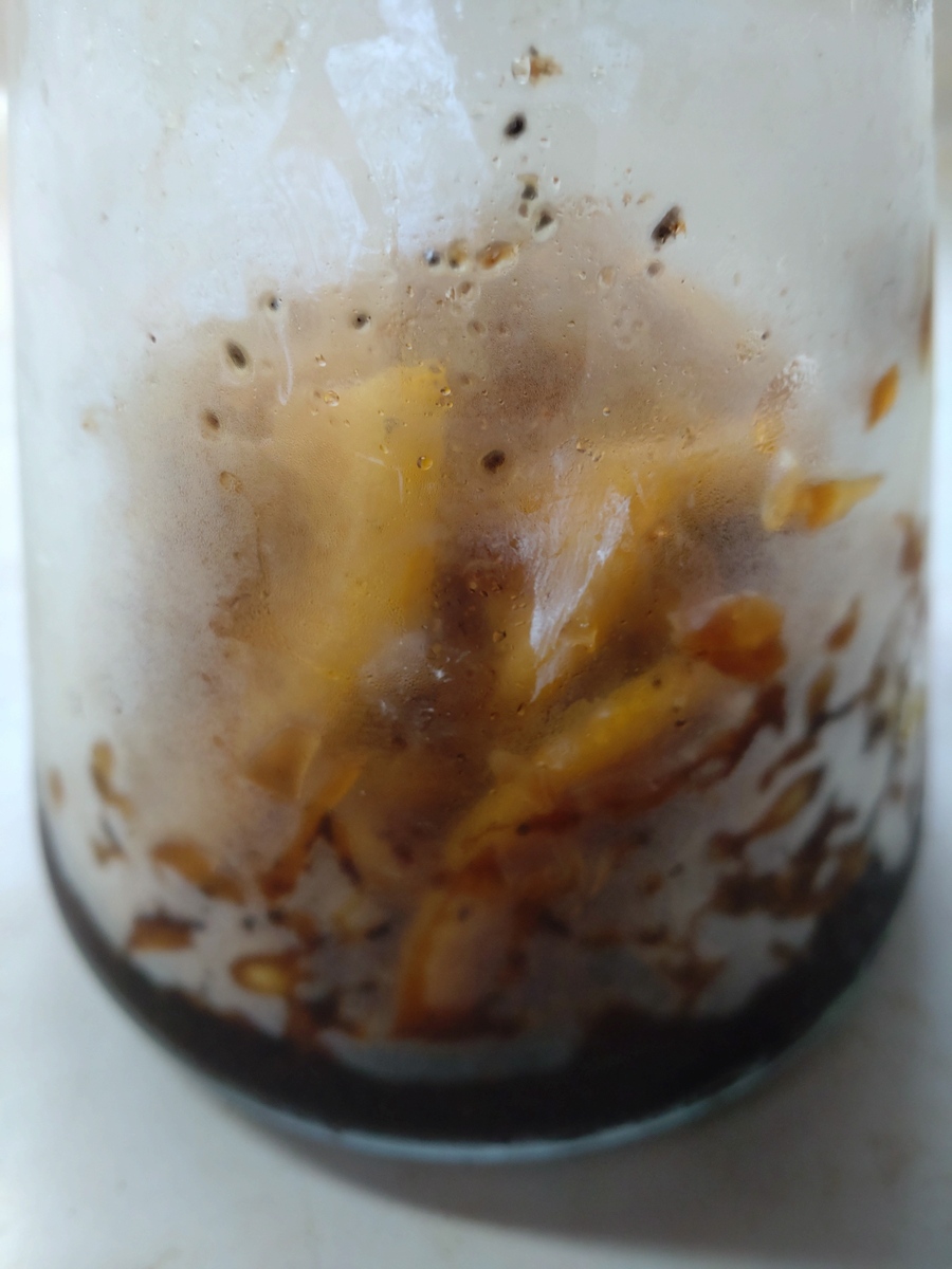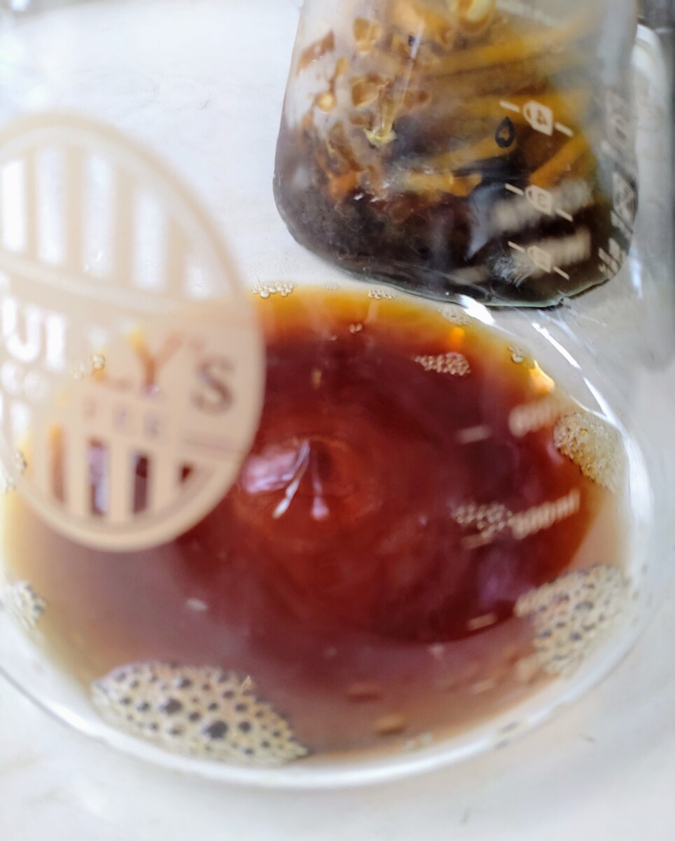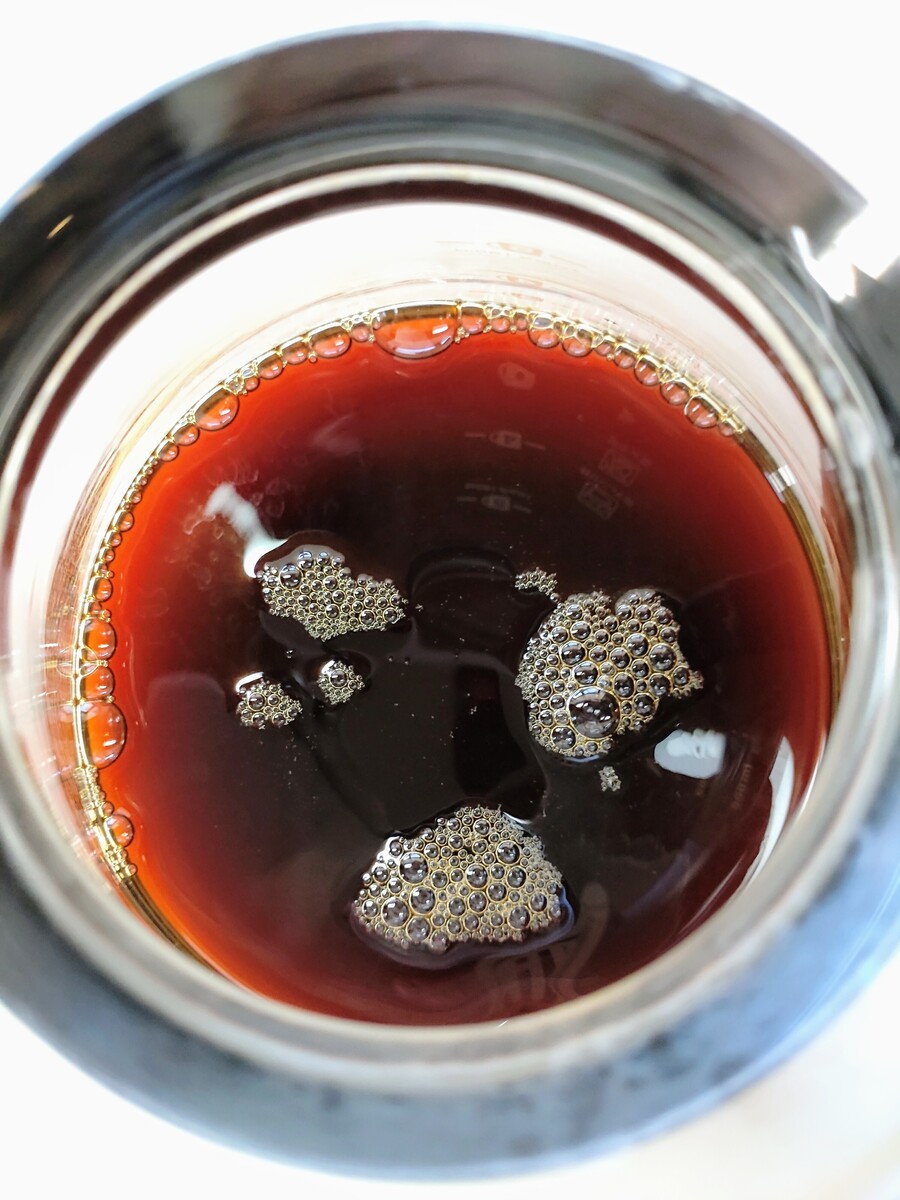 7時間半経ったあたりで、一度お匙で上澄みの味見をしてみたところ、ふわっと夏みかんとブルンジの香り。