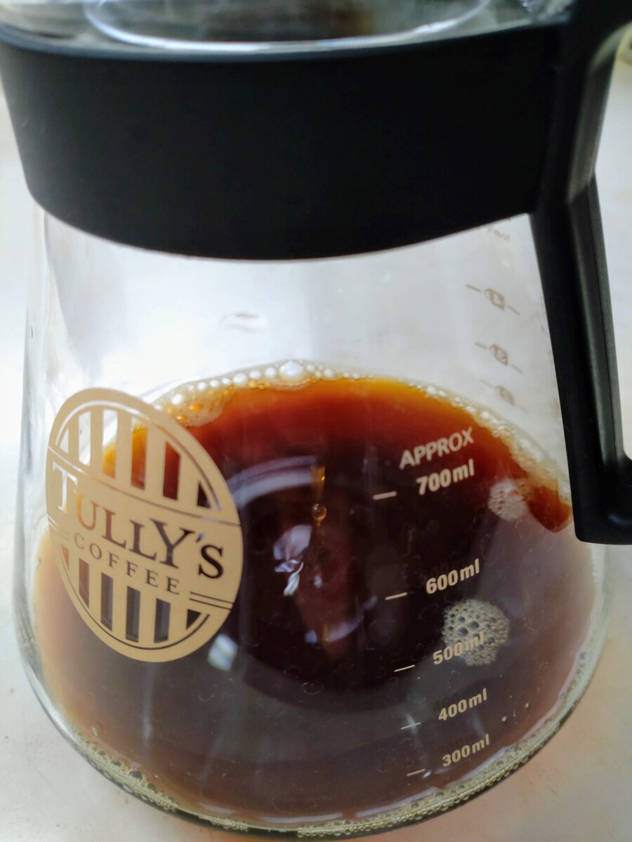 二人分淹れたいなら、( ..)φメモメモ...豆100g,湯200ml,常温水600ml,8時間~