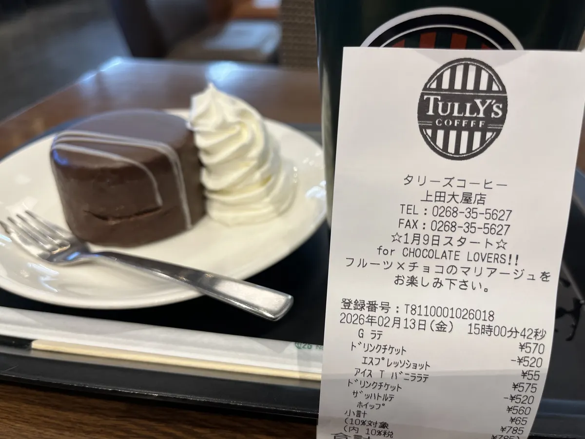 口ずさみながら運転していると、おやつタイムのタリーズ上田大屋店です