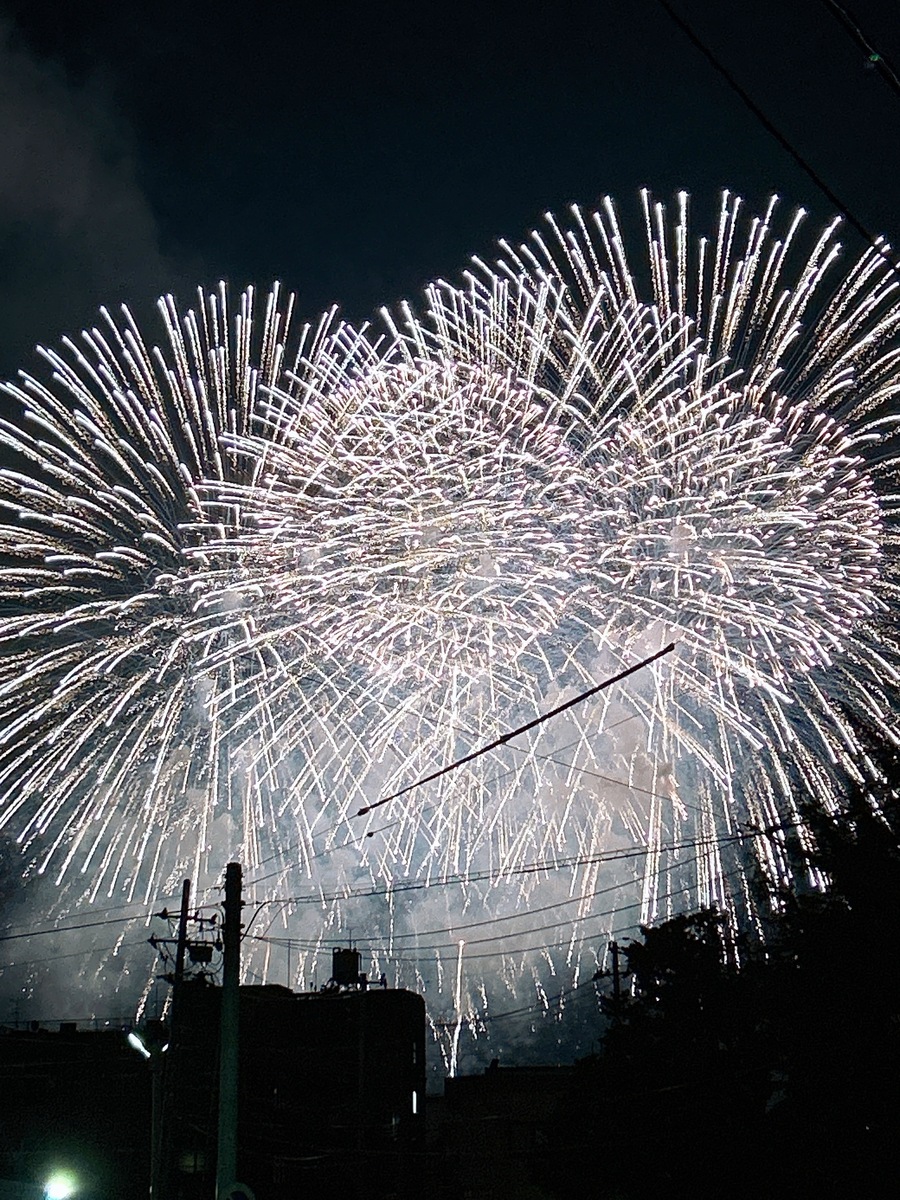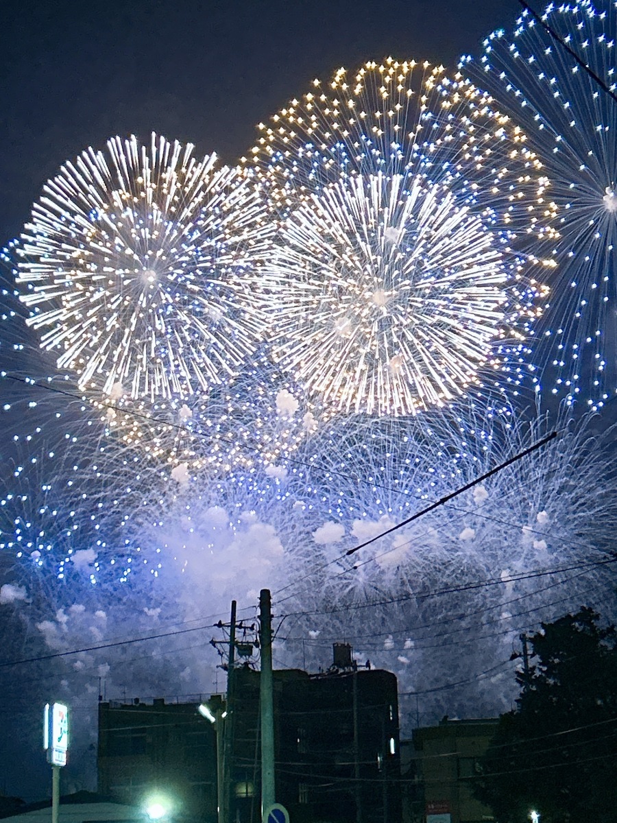 花火も圧巻で、夏の夜空に大輪の花がたくさん咲いて、綺麗でした。