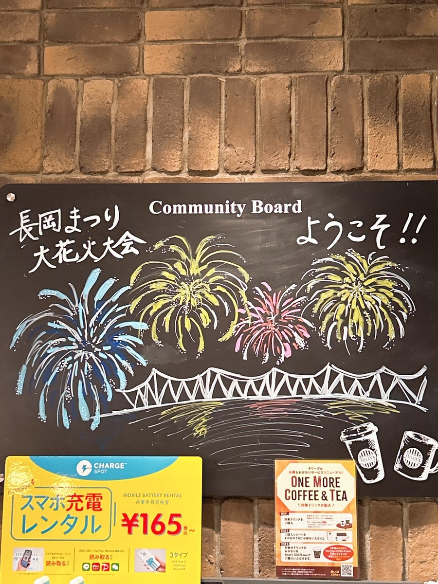長岡まつりの花火の手書きの絵が可愛くて一緒にパチリ。